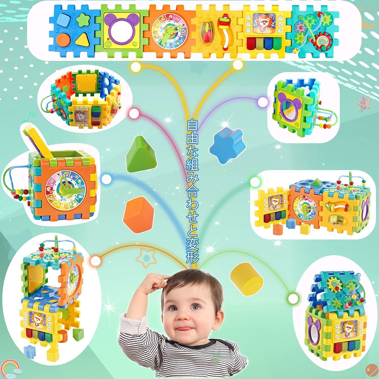 UQTOO ビーズコースター ルーピング 子供 赤ちゃんおもちゃ 積み木 多機能 はめこみ・形合わせ ボックス 知育玩具 早期開発 指先訓練 音楽おもちゃ 男の子 女の子 ブロック はめ込み 立体 パズル アクティビティキューブ | yankees