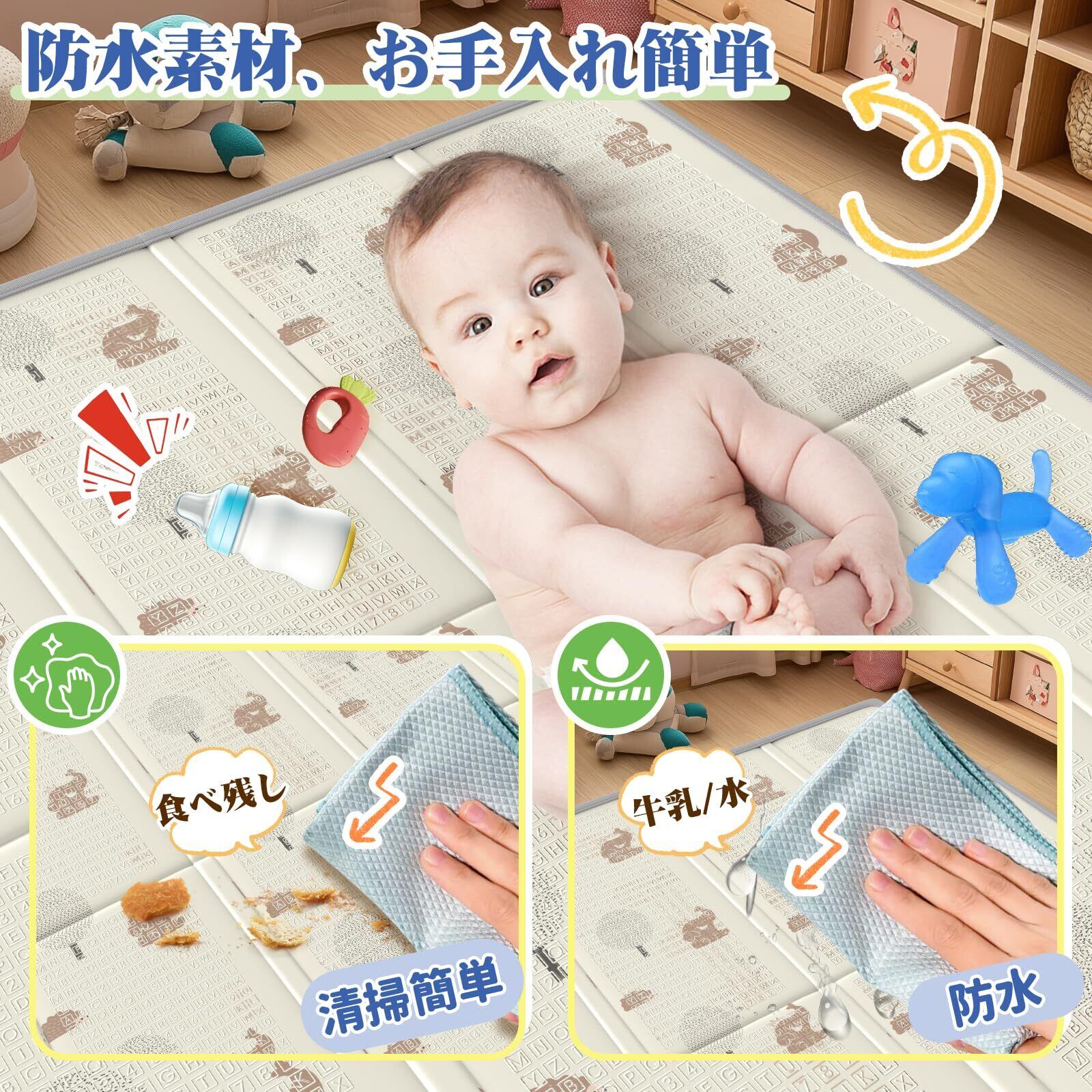 本商品は、防水機能を備えた素材で作られており、飲み物や食べ物がこぼれても、簡単に拭き取ることができます。赤ちゃんの遊びやお昼寝にぴったりの快適なマットです。柔らかい厚みで、保護クッションの役割も果たし、安心して遊べます。「※この商品に関するご質問がございましたら、お気軽にお問い合わせください。」