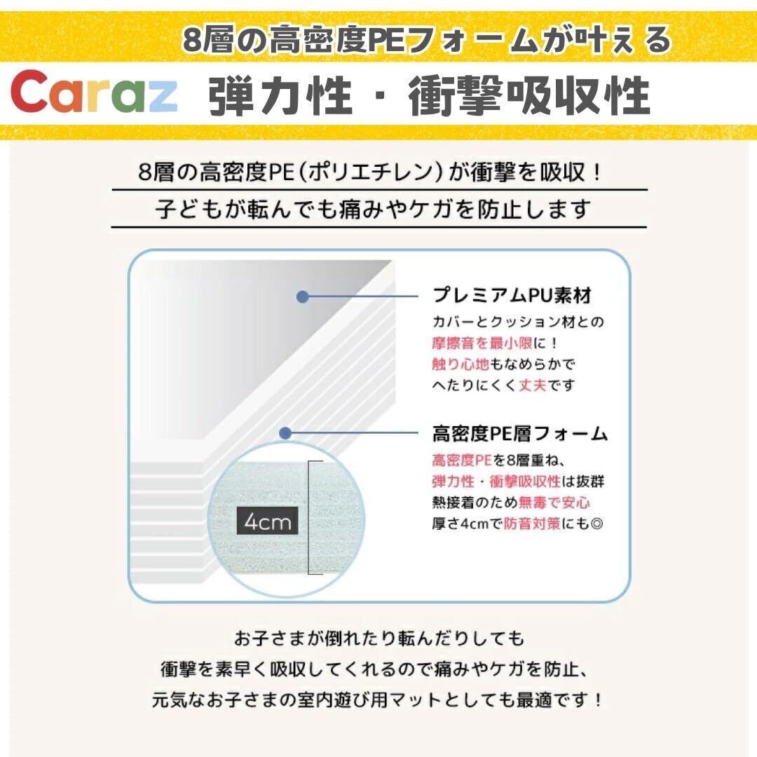ご使用前には必ず製品の状態をご確認の上、破損がないかチェックしてください。また、お子様が遊ぶ際には、必ず成人の監視を推奨いたします。「Caraz プレイマット」で、赤ちゃんとの楽しい時間をぜひお楽しみください!