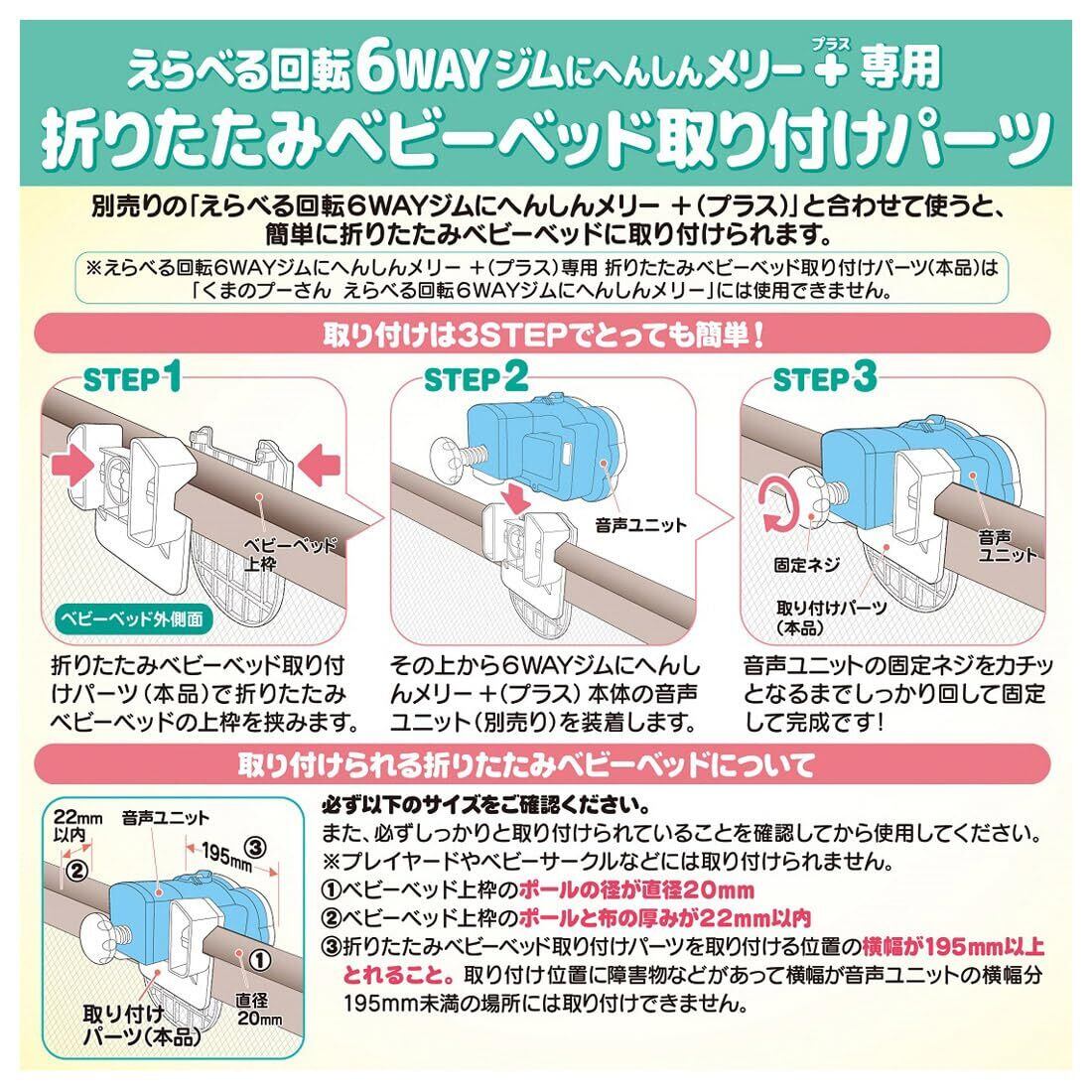 「えらべる回転 6WAYジムにへんしんメリー プラス くまのプーさん」専用の、折りたたみベビーベッドへ取り付けるための別売りパーツです。
