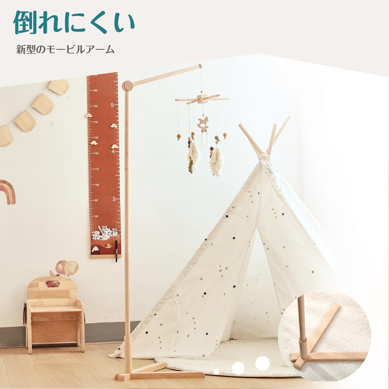 高品質な木材を使用したこのモービルは、赤ちゃんの安全を第一に考えられています。無毒で安心な素材を使用し、親子ともに安心してご使用いただけます。