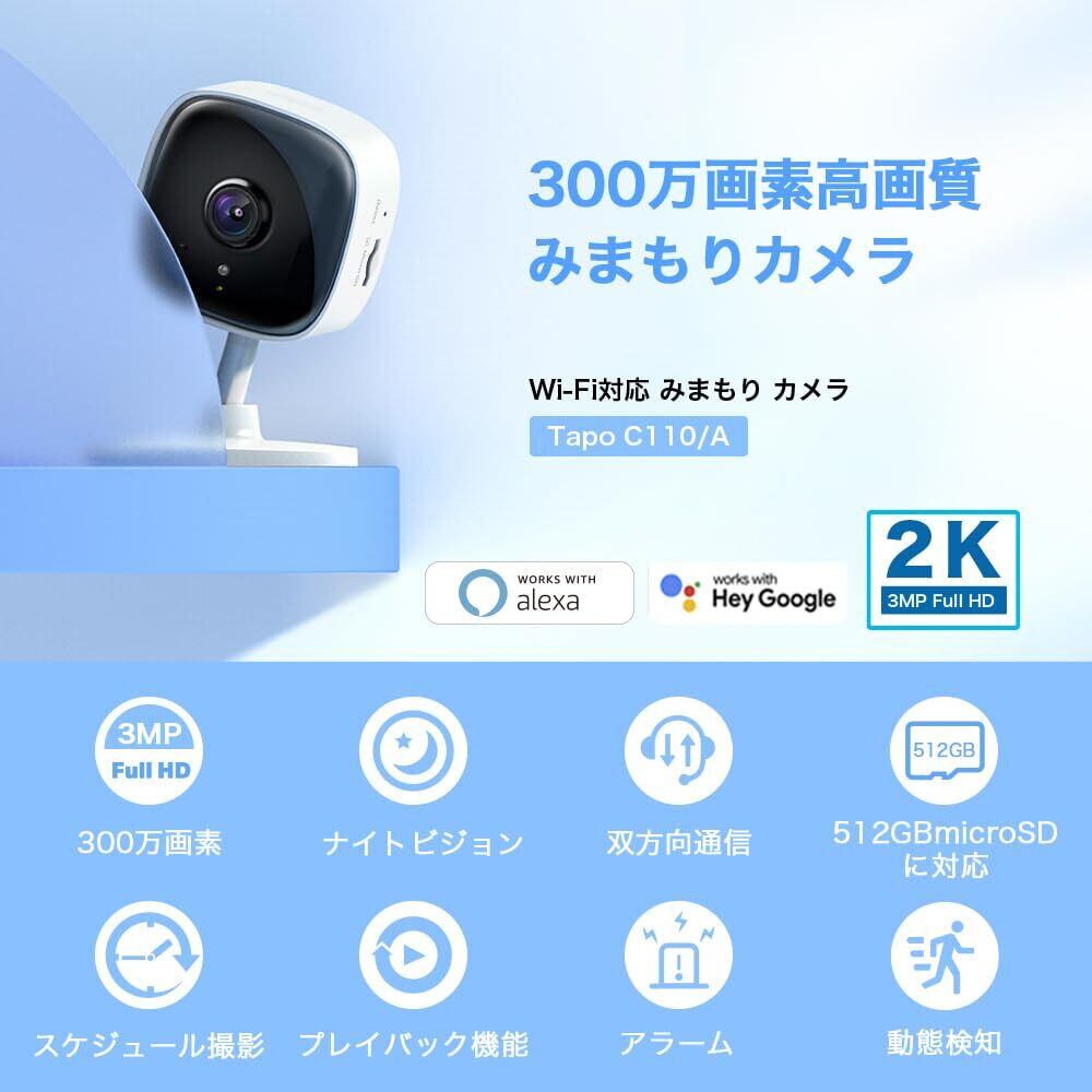 TP-Link Tapo ペットカメラ 300万画素 ベビーモニター ネットワークWi-Fiカメラ 屋内カメラ 2K 動作検知アラート機能 夜間撮影 メーカー保証3年 Tapo C110 | yankees