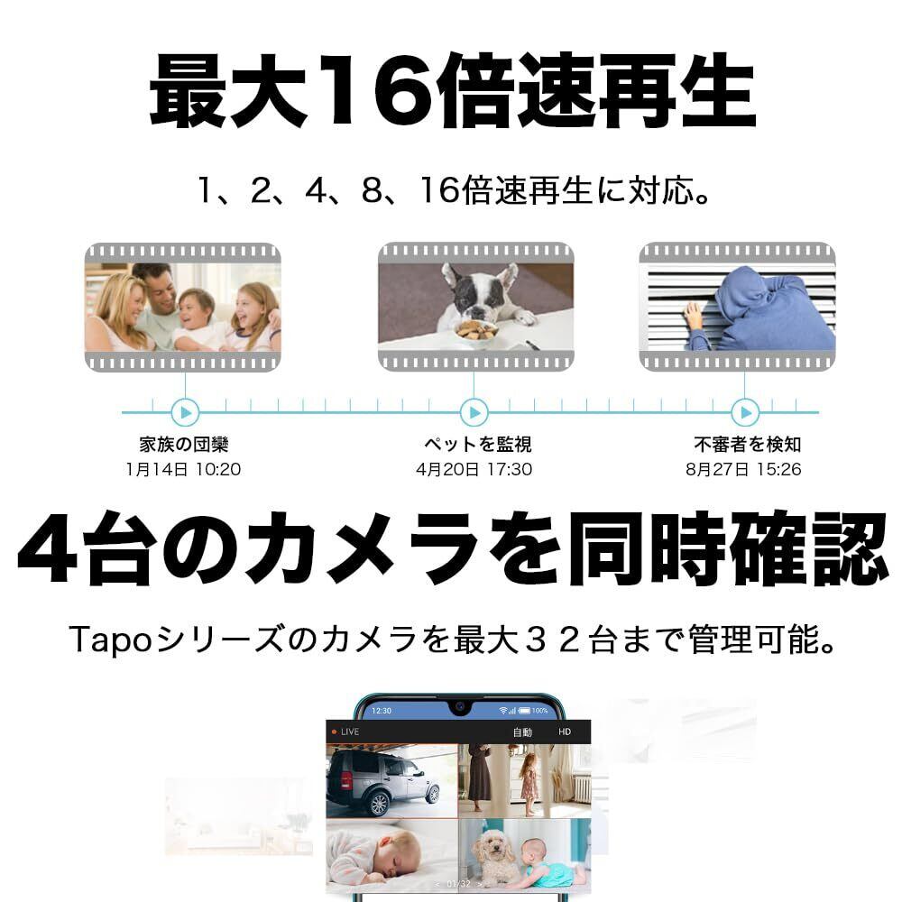 [スマホアプリ対応] スマホアプリ”Tapo”に対応。最大4つのTapoカメラ映像を1つの画面で確認可能