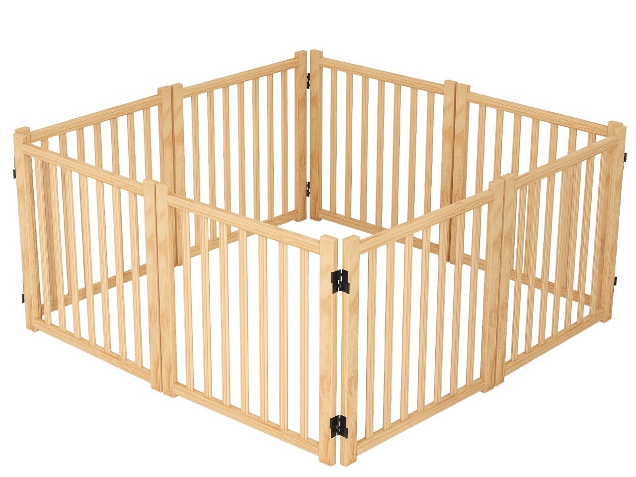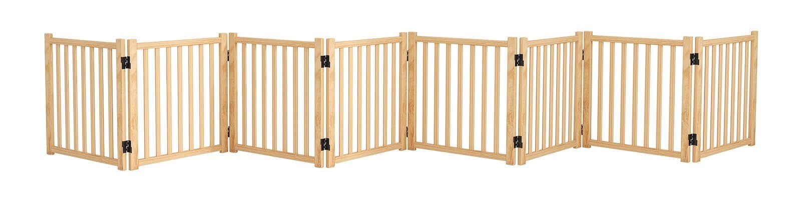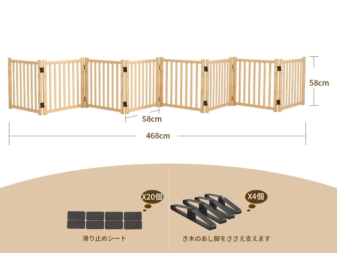 犬フェンス 木製 ペットゲート 置くだけ ペットフェンス 折り式バリア 安全柵 小型犬 中型犬 脱走防止 ガード 飛び出し防止 多頭飼い ペットガード (高さ58cm、長さ458cm、8つのパネル) | yankees