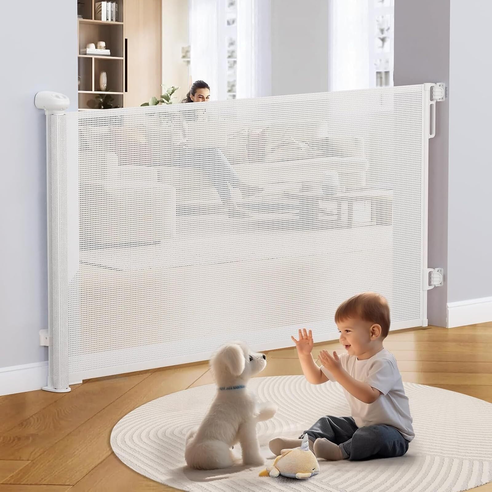 UNNIK ベビーゲート ロール式 【ネジ付け可&貼り付け可】 幅180CM ペットゲート ベビーゲート 階段上 巻き取り式 階段ゲート 格納式 安全ロック機能 赤ちゃん/ペット/猫/犬に適応 日本語取扱説明書付き (ホワイト, 最大幅180cmx高86cm)