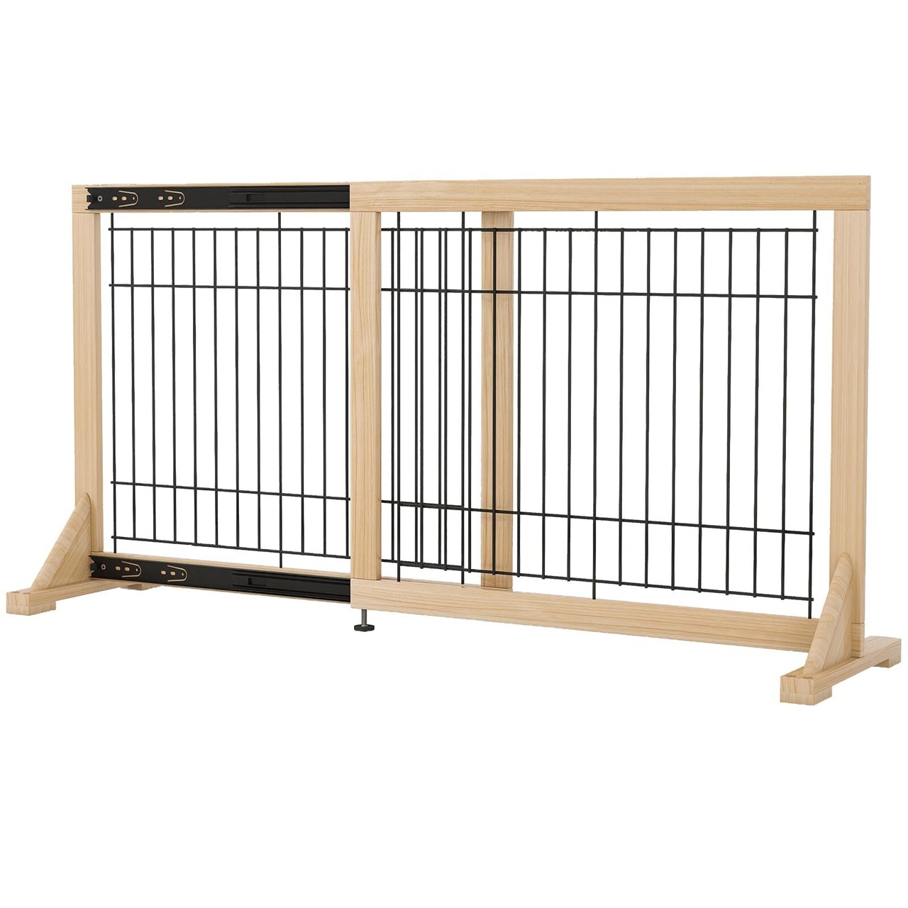 「新型レールフェンス」Oapety ペットゲート 高さ60CM 伸縮 幅約64~115cm 犬 ゲート 置くだけ 木製 ガイドレール付き ベットフェンス 室内 飛び出し防止柵 脱走防止 中小型犬用 スムーズ | yankees