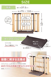 幼児やペットの安全を守るために設計されたこのゲートは、安心して使える造りになっています。独自のデザインにより、突っ張り式でしっかりと固定され、場所を選ばずに使用できます。