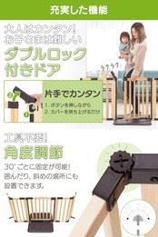 ナチュラルな木目調で、インテリアにも馴染むデザインが魅力です。おしゃれな空間を演出しつつ、機能性も兼ね備えたこのドアーズは、生活空間を壊すことなく、上手に安全を確保します。