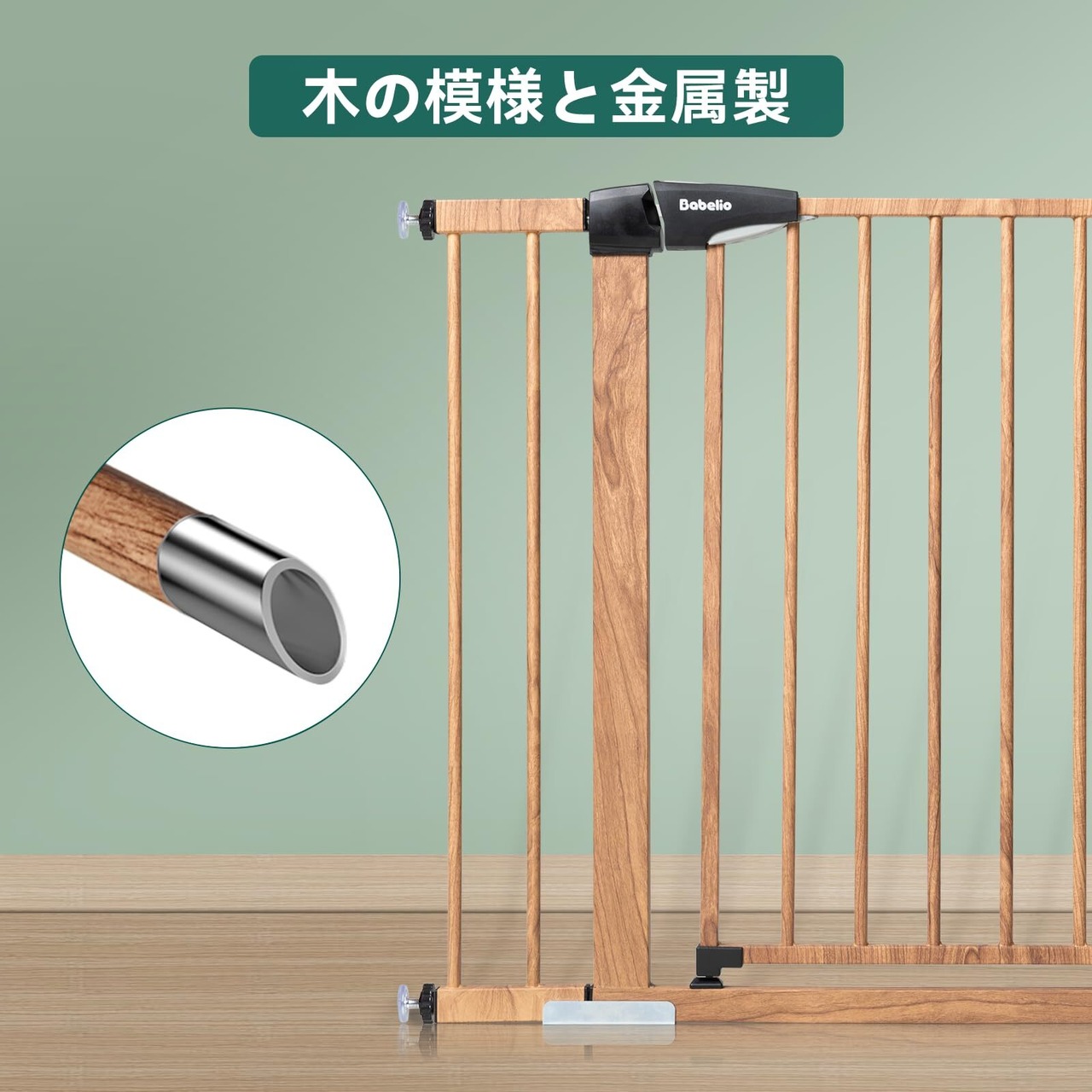 BABELIO 木の模様の金属製ベビーゲート 簡単に取り付けられる階段および出入り口用の圧力取り付け式ドッグゲート 超狭小サイズ 拡張可能 取付幅 66-94cm 高さ76cm