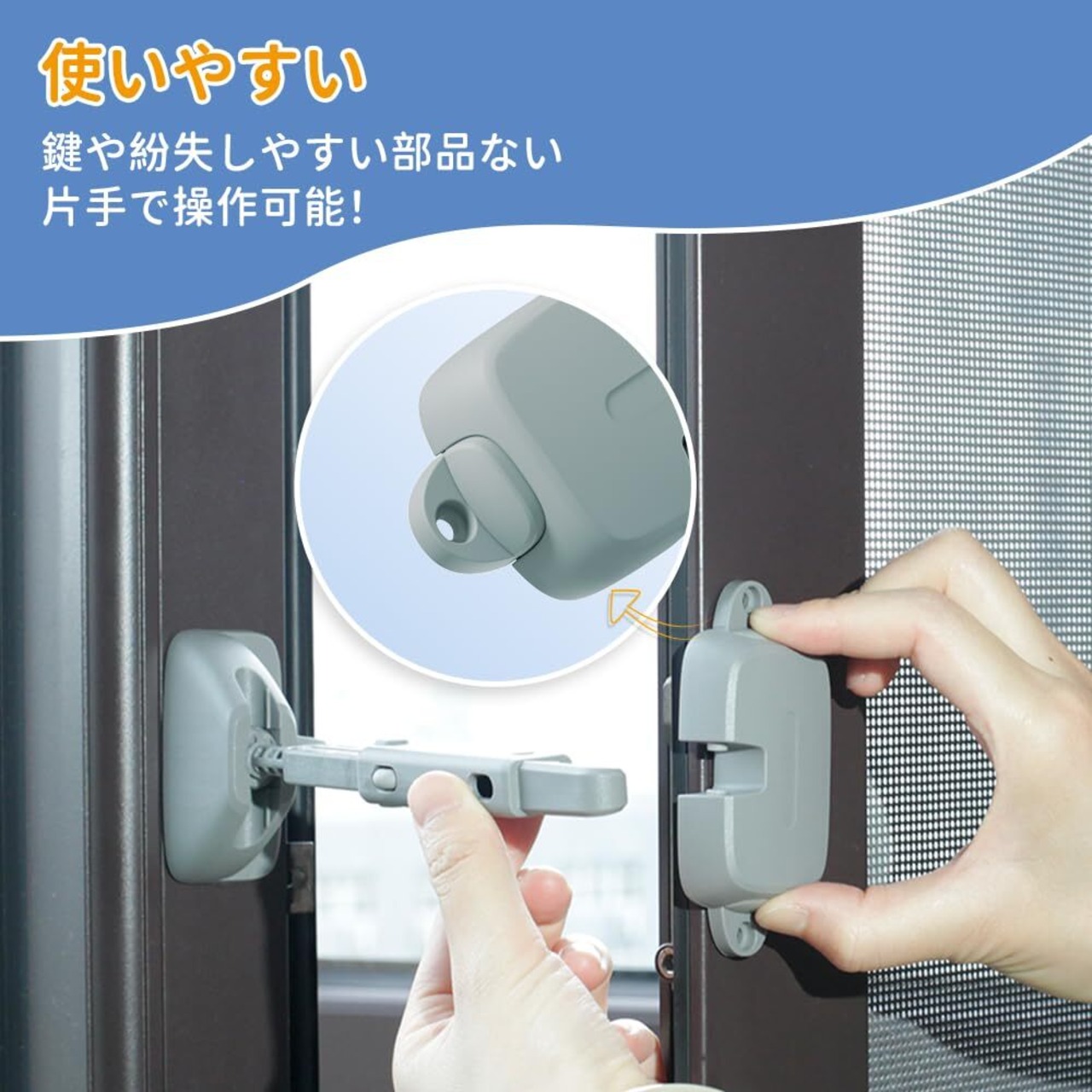 使いやすい:ダブルキーを押してロックを解除すると、窓を自由に開閉できます。鍵や紛失しやすい部品なしのシンプル設計を採用します。滑りボタンを押したまま、窓を押し下げるか引き上げて、窓の隙間を調整します。大人なら簡単に使用できますが、お子様は使いにくいです。