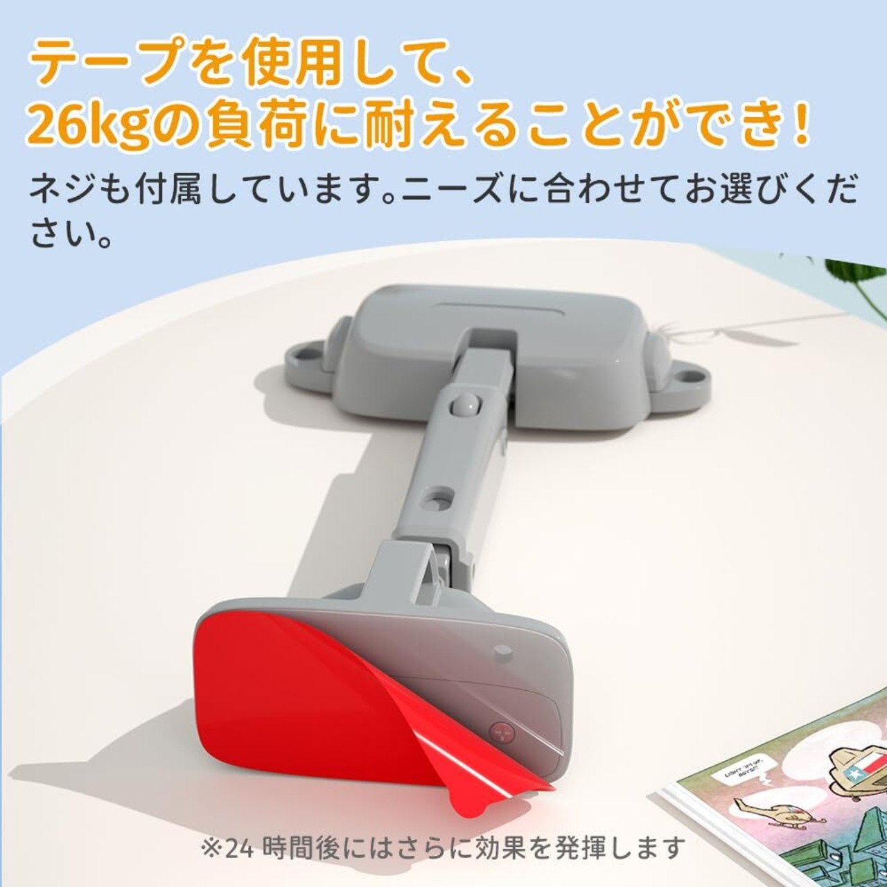 取り付け簡単 :取り付け用のテープとネジが付属しています。実際のニーズに合わせて適切な取り付け方法を選択してください。テープを使用して取り付けると、少なくとも26kgの負荷に耐えることができます(24時間後にはさらに効果を発揮します)。