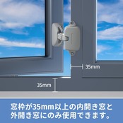 ご注意-窓枠が35mm以上のすべり出し窓にのみ使用できます。本製品は保護者の監督を代替するものではございません。部品に破損、破れ、紛失などの不具合が生じた場合は、ただちにご使用をおやめください。