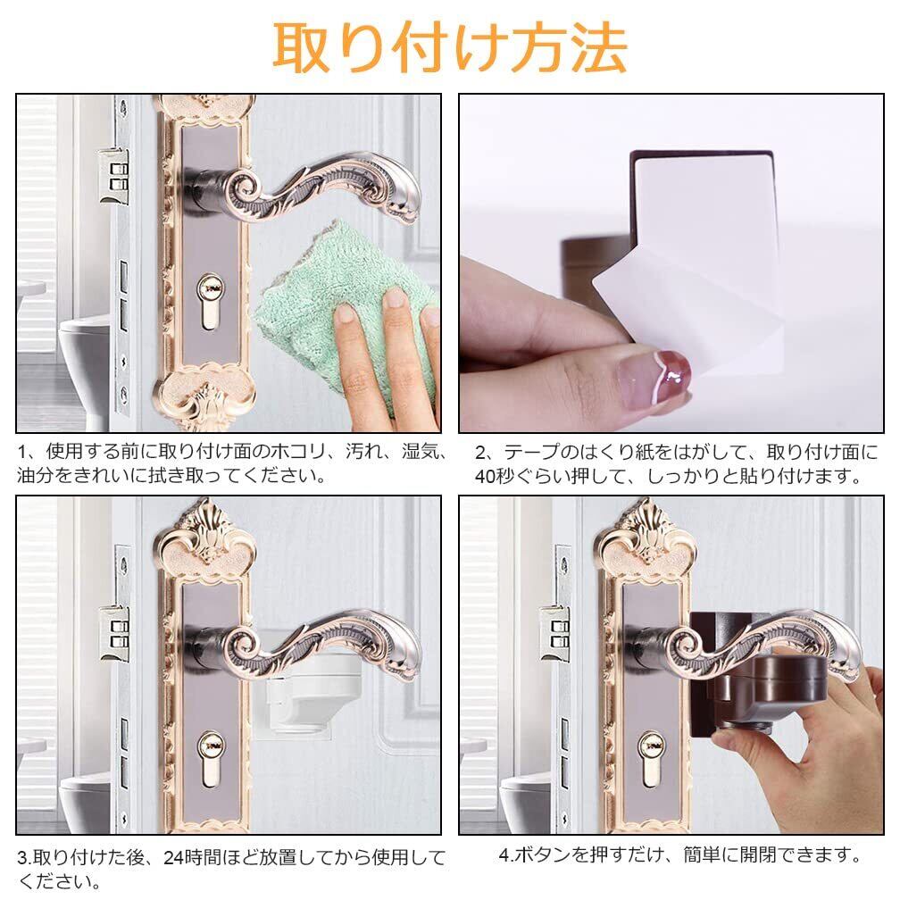 「多用途」:適用範囲が広くて、部屋・台所·浴室のドア、窓、引き出し、戸棚などに適用。正確に貼り付けたら、ロックを解除する唯一の方法はボタンを押してから回転することで、子供に良い保護作用を果たしています。