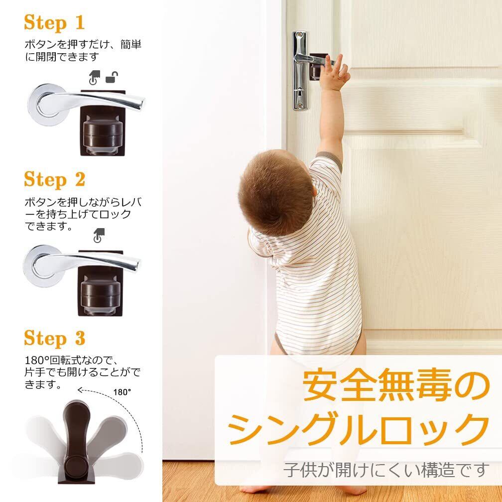 ワンタッチでロックでき、非常に操作が簡単です。大人にはストレスなく使用でき、子どもには手の届かない位置に設置することで、いたずらを防ぎます。また、取り付けが手軽なので、必要なときにすぐに移動・取り外しが可能です。