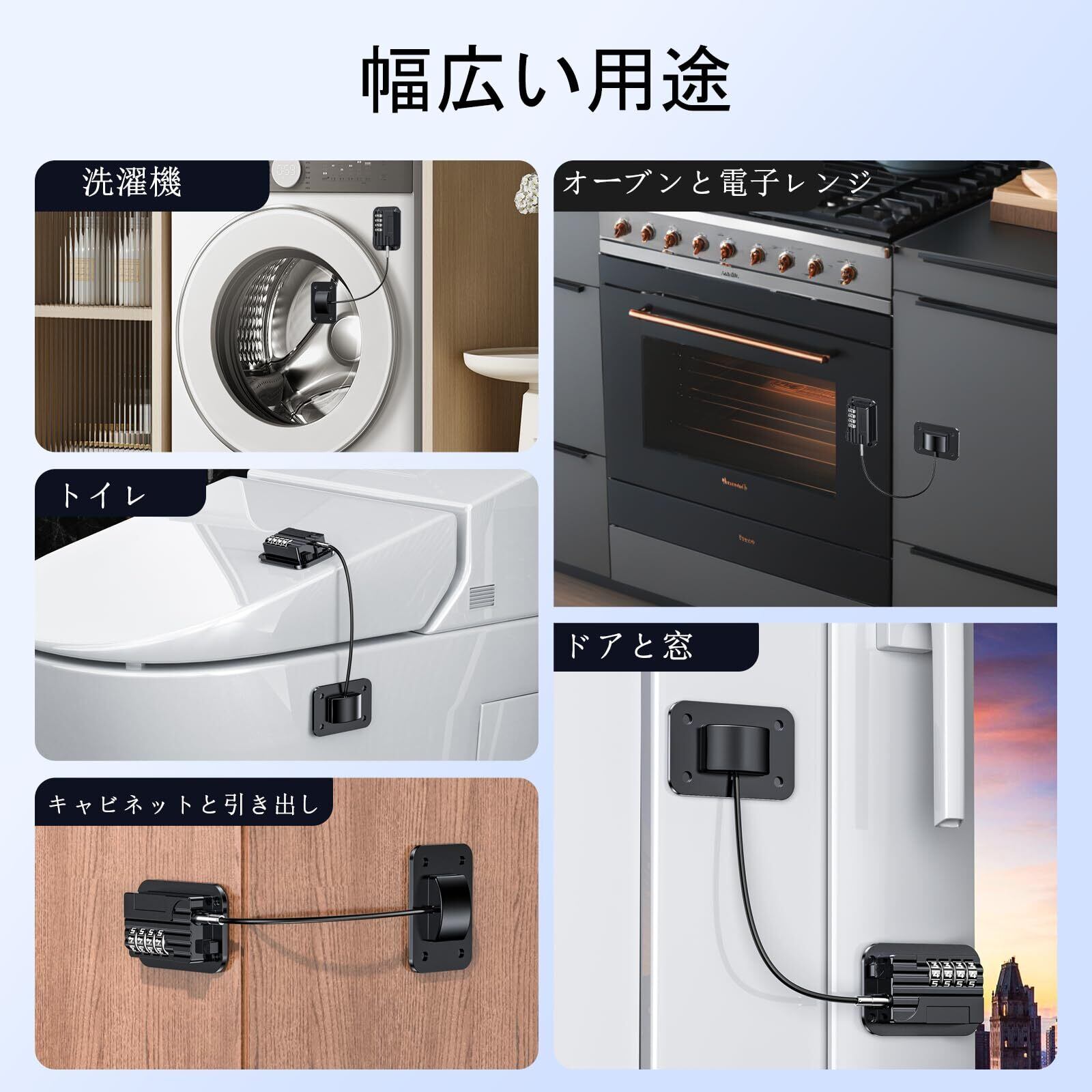 多機能パスワードロック:冷蔵庫だけでなく、キャビネット、トイレ、窓、引き出し、クローゼット、洗濯機などにも使用できます。 安全ロックでお子様の安全を確保できます。