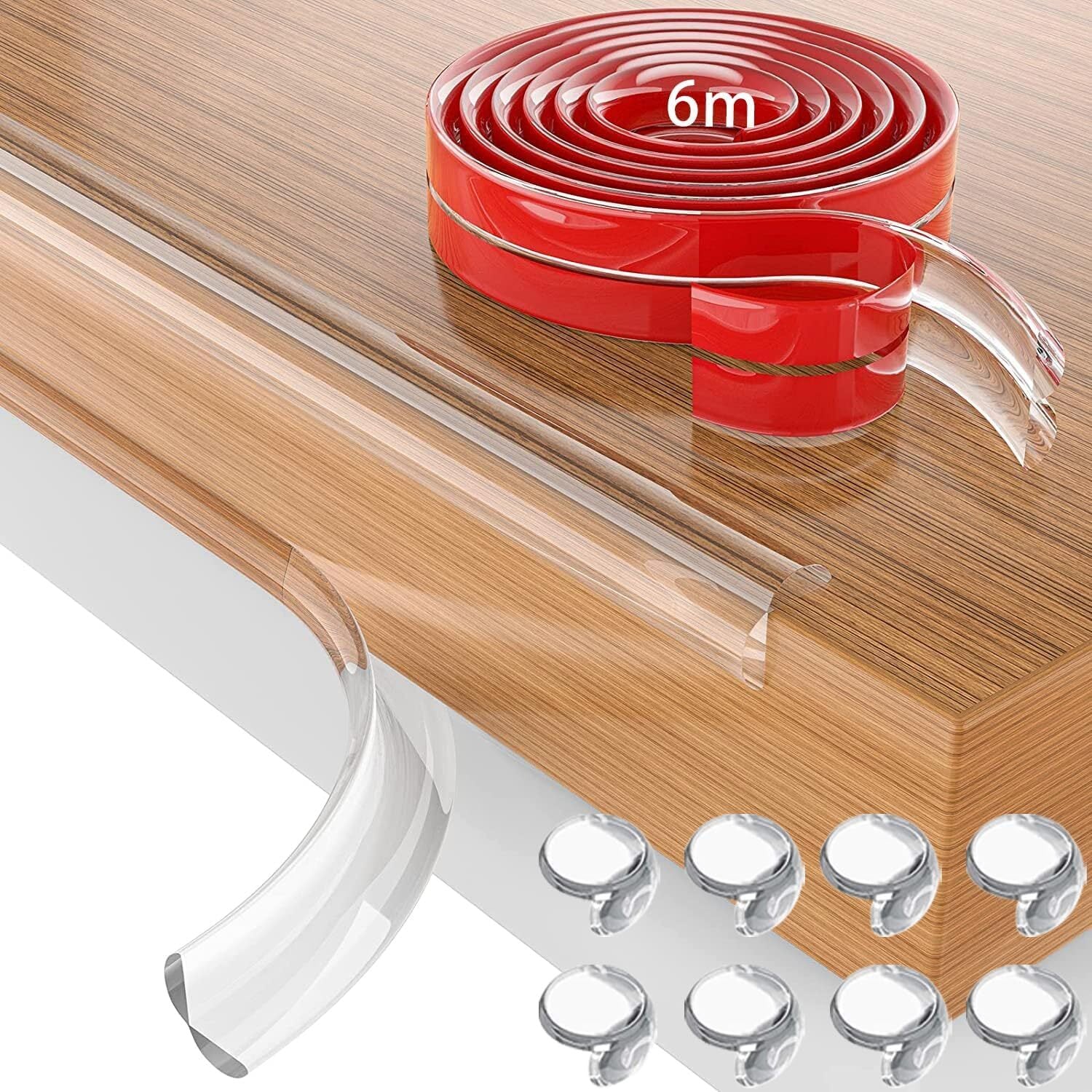 RUHHO コーナーガード 透明 長さ6m コーナークッション PVCクリア素材 強力テープ ベビーガード 赤ちゃん けが防止 (長さ6m+8個ガード)