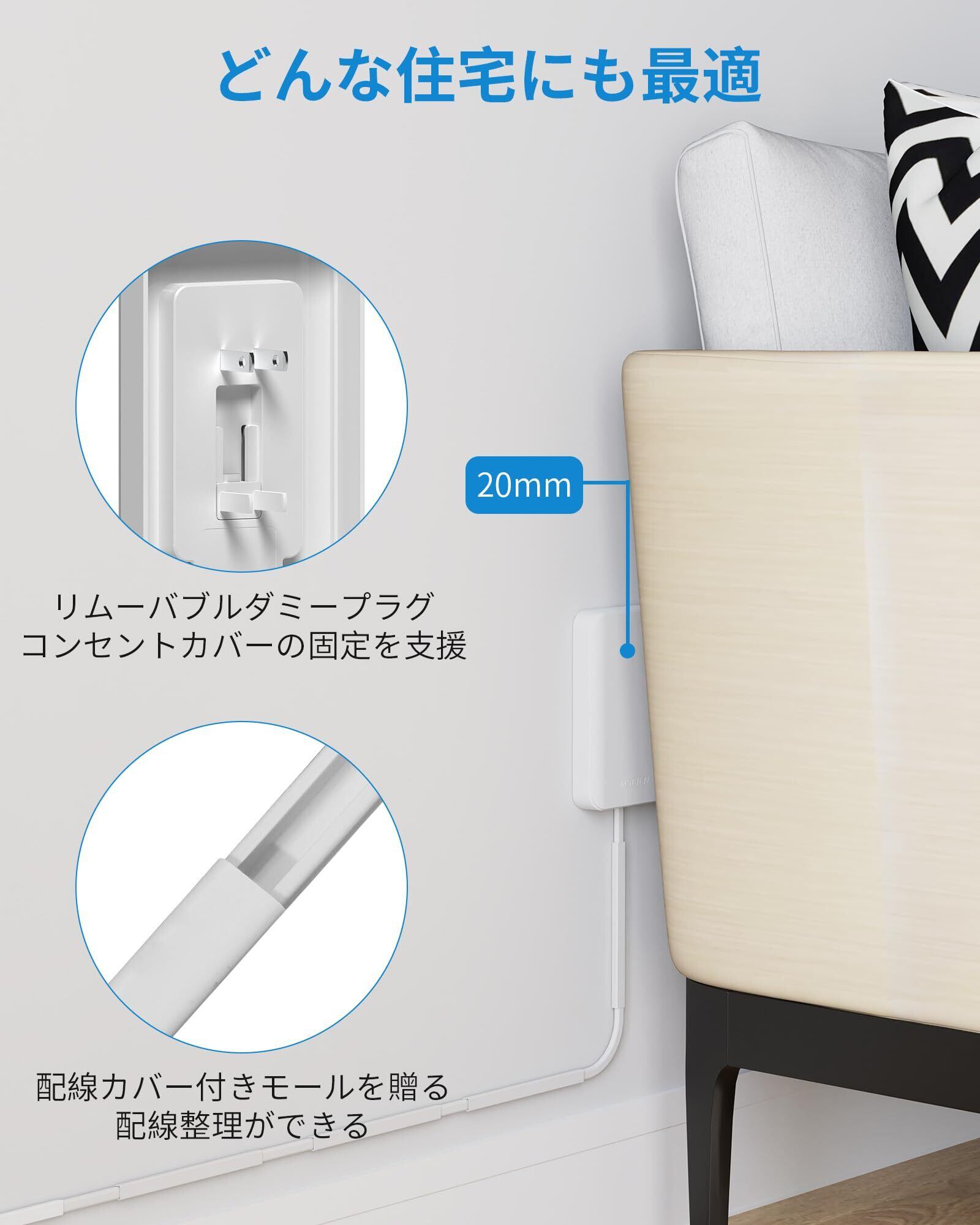 巧妙・美観・おしゃれ:おしゃれな電源タップです。カバーはプラグを隠すことができ、壁に溶け込んで、壁面と違和感がありません。コンセントカバーの固定をサポートするダミープラグを移動できます。2つのプラグ間の最大間隔は35 mmです。配線カバー付きモールを贈る、配線整理ができる。昔の雑然とした壁面を変え、自宅やオフィスなどの場所をよりすっきり、美しくすることができます。