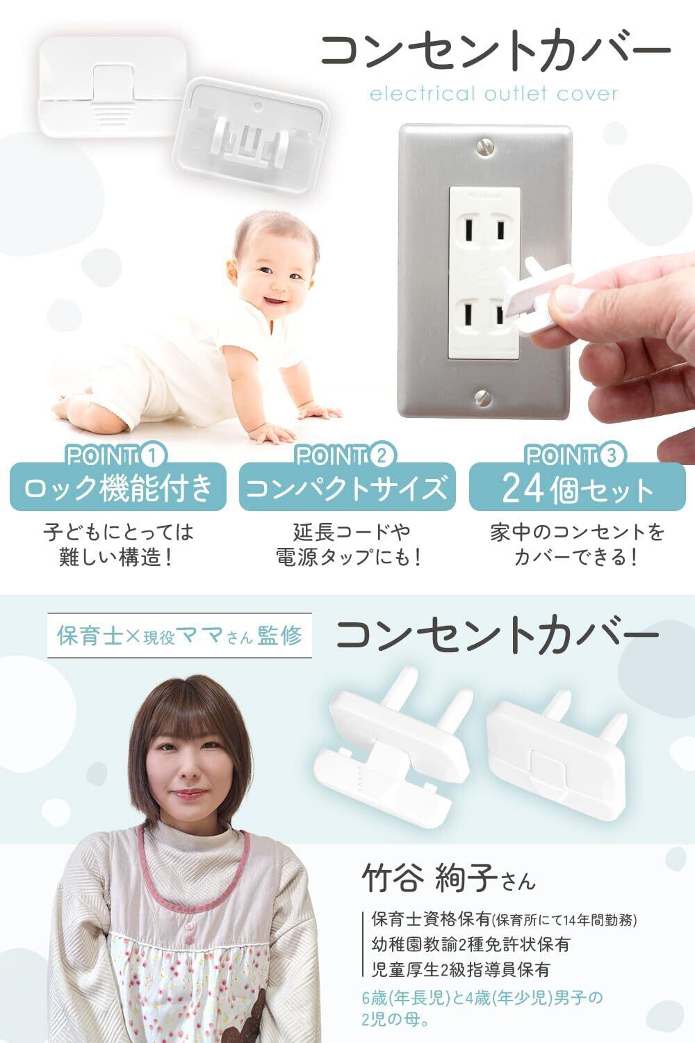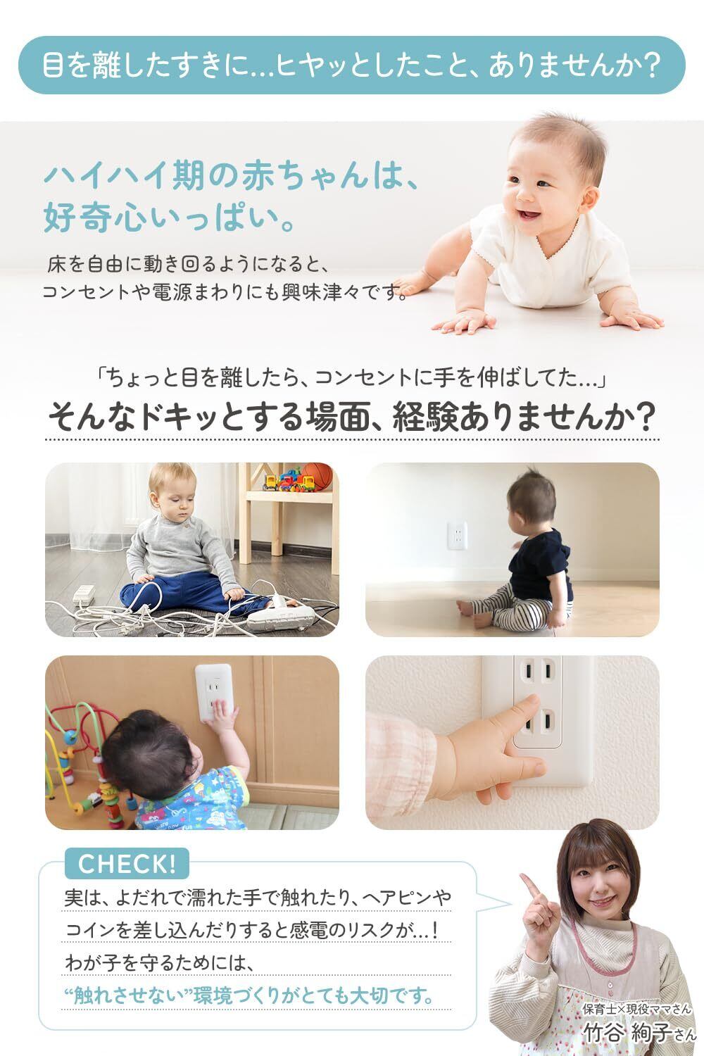 「RIMA RUHEのコンセントカバー」で、大切なお子様の安全をしっかりと守りましょう!このコンセントカバーは、保育士と現役ママの知恵を活かした設計で、家庭の安全対策に欠かせないアイテムです。