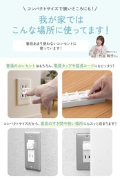 電源タップや延長コードなどにも設置可能なコンパクトサイズ!