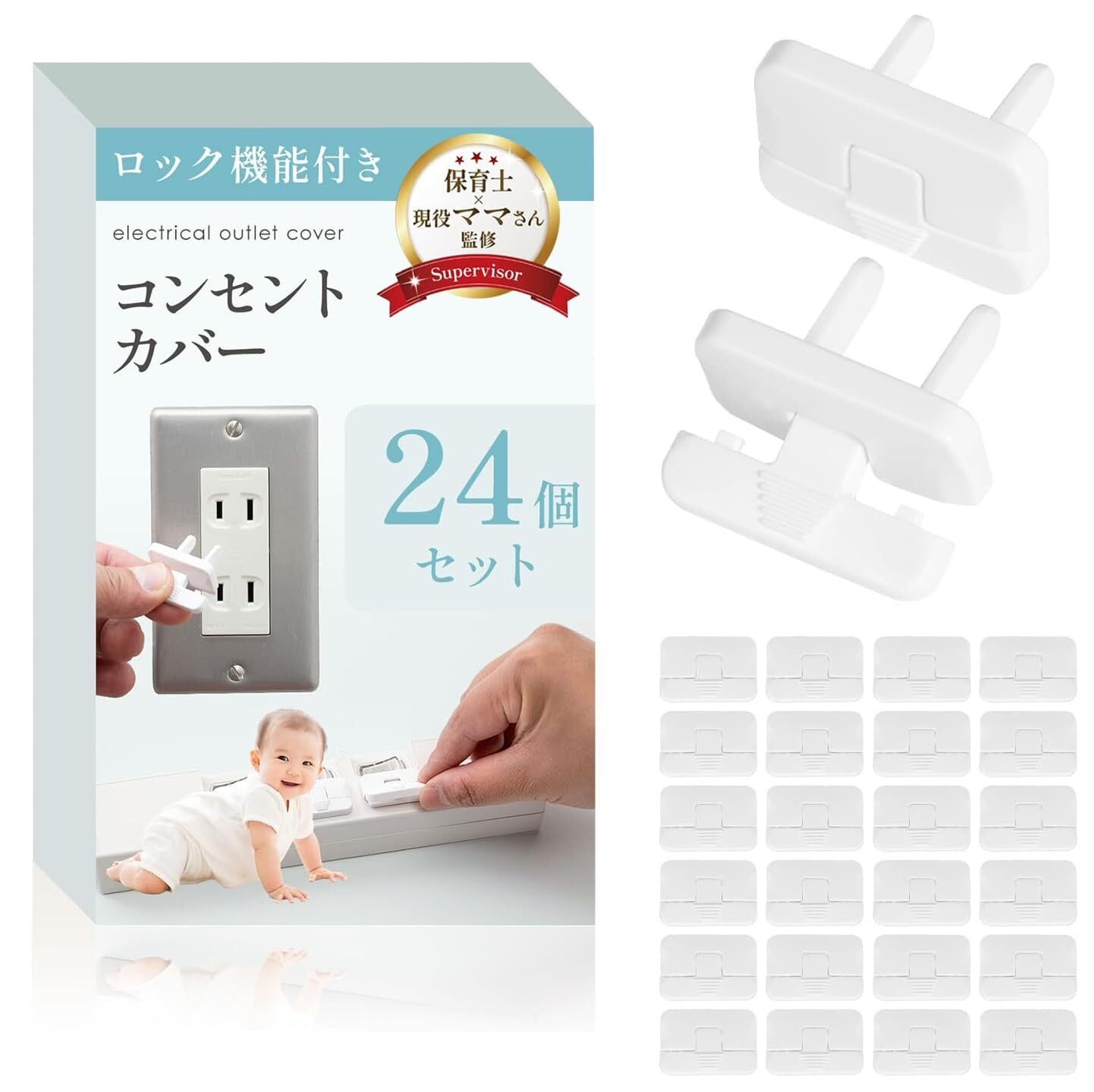 コンセントカバー (24個入)【保育士×現役ママさん監修】抜けにくいロック機能x延長コードにも使用可能 RIMA RUHE