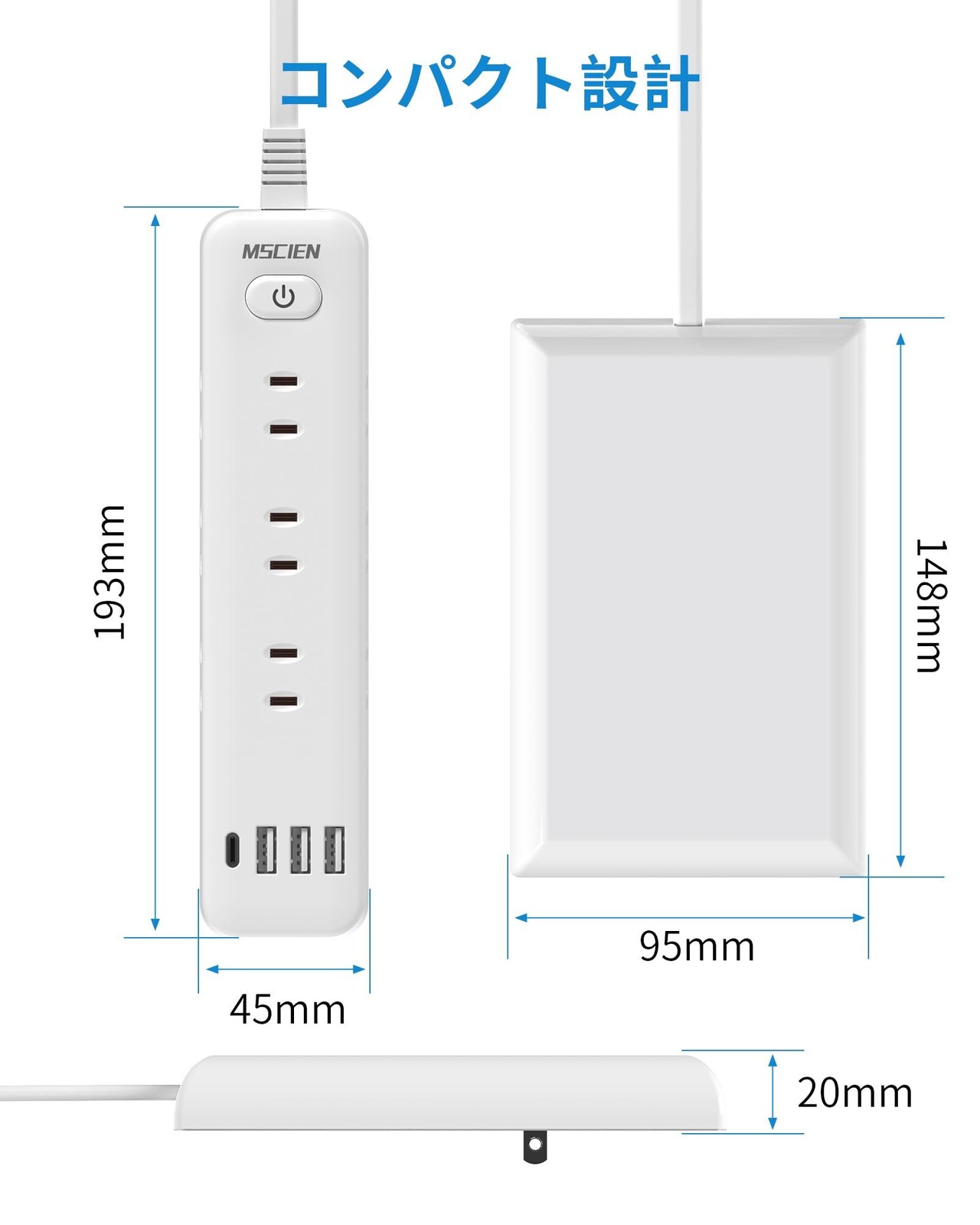 コンセントカバー付き:コンセントプラグはカバーが付いています。プラグピンを含まないカバーサイズは約148㎜×95㎜×20㎜です。※ご注意:カバーの深さは約20㎜ですから、壁コンセントと本製品のサイズが異なる場合は、本製品を挿入する際にカバーと壁コンセントの間に少し隙間があります。購入前にサイズを確認してください。