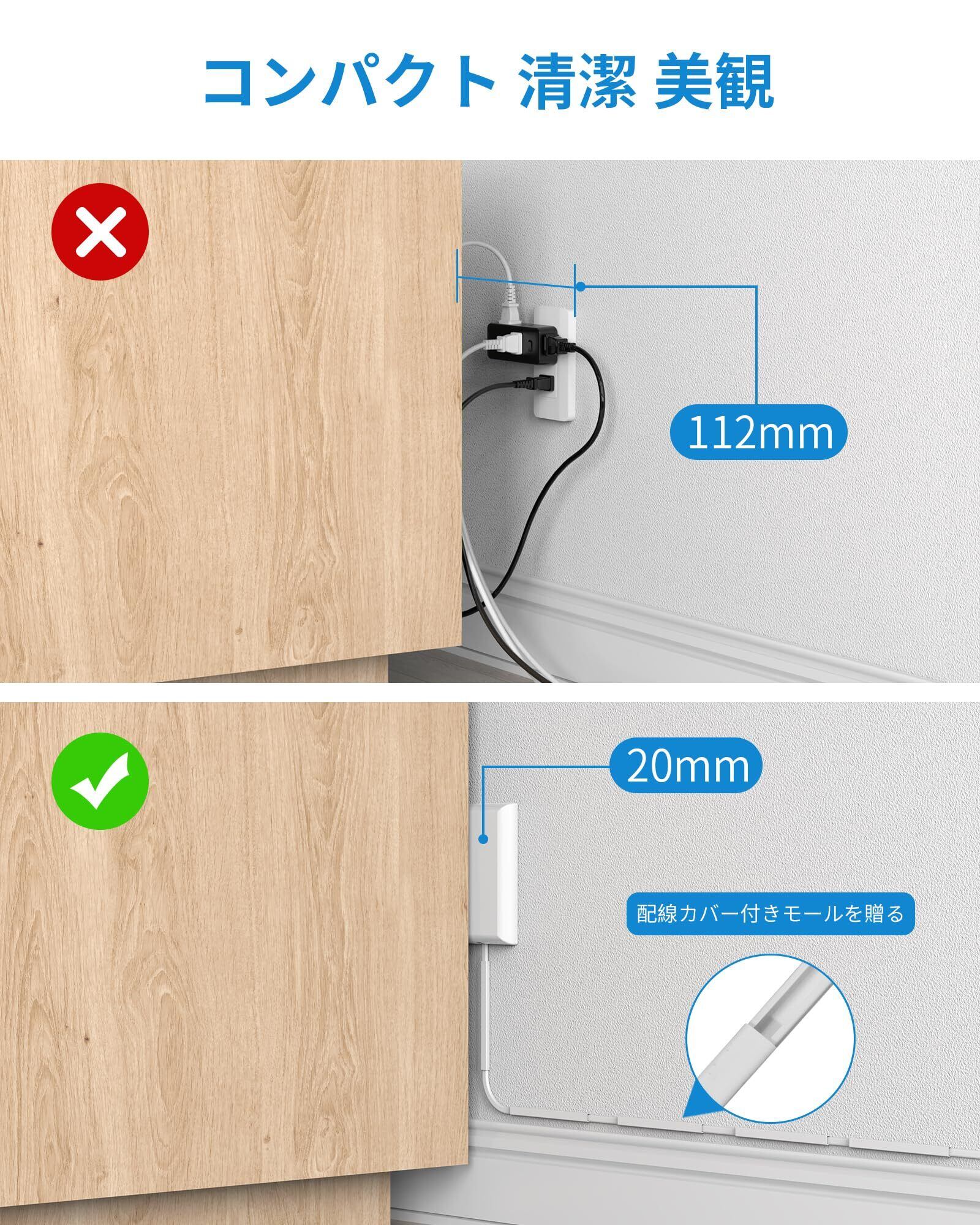 美観・おしゃれ:おしゃれな電源タップです。カバーはプラグを隠すことができ、壁に溶け込んで、壁面と違和感がありません。配線カバー付きモールを贈る、配線整理ができる。昔の雑然とした壁面を変え、自宅やオフィスなどの場所をよりすっきり、美しくすることができます。