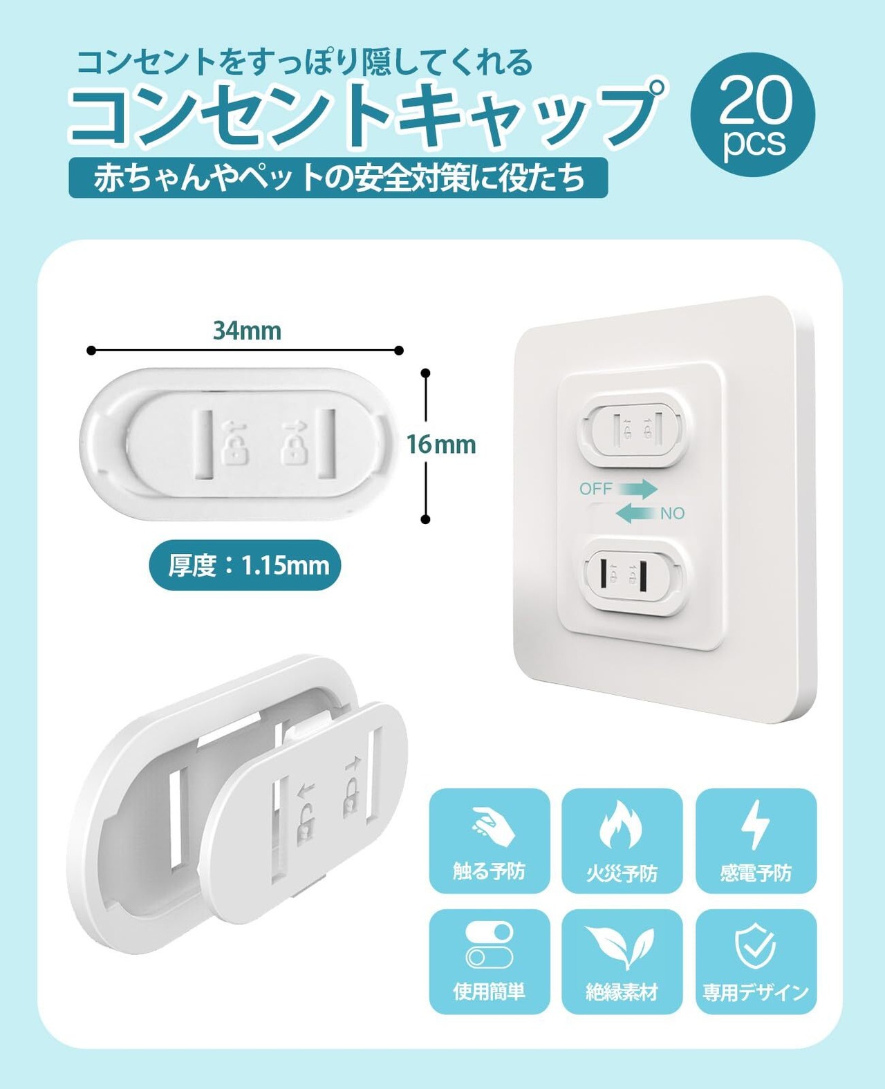 このセットには、20個のコンセントカバーが含まれており、自宅や保育園など、さまざまな場所で安全対策ができます。多くのコンセントをカバーできるため、手軽にご利用いただけます。