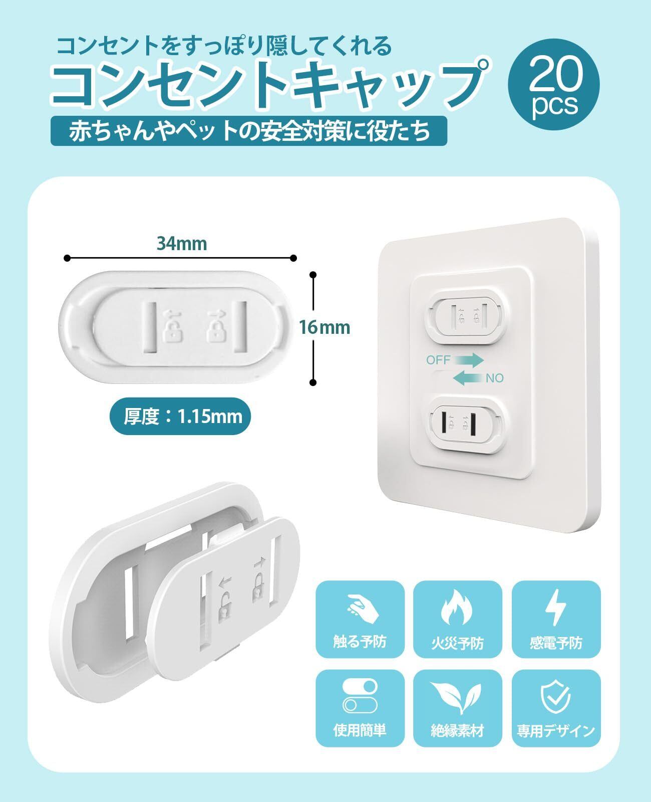 【大容量の20個セット】サイズ:34x16.3x1.15mm ご家庭のコンセント数を十分賄える大容量の安全プラグカバーセットです。自宅はもちろん、保育園、オフィス、老人ホームなどにもおすすめです。