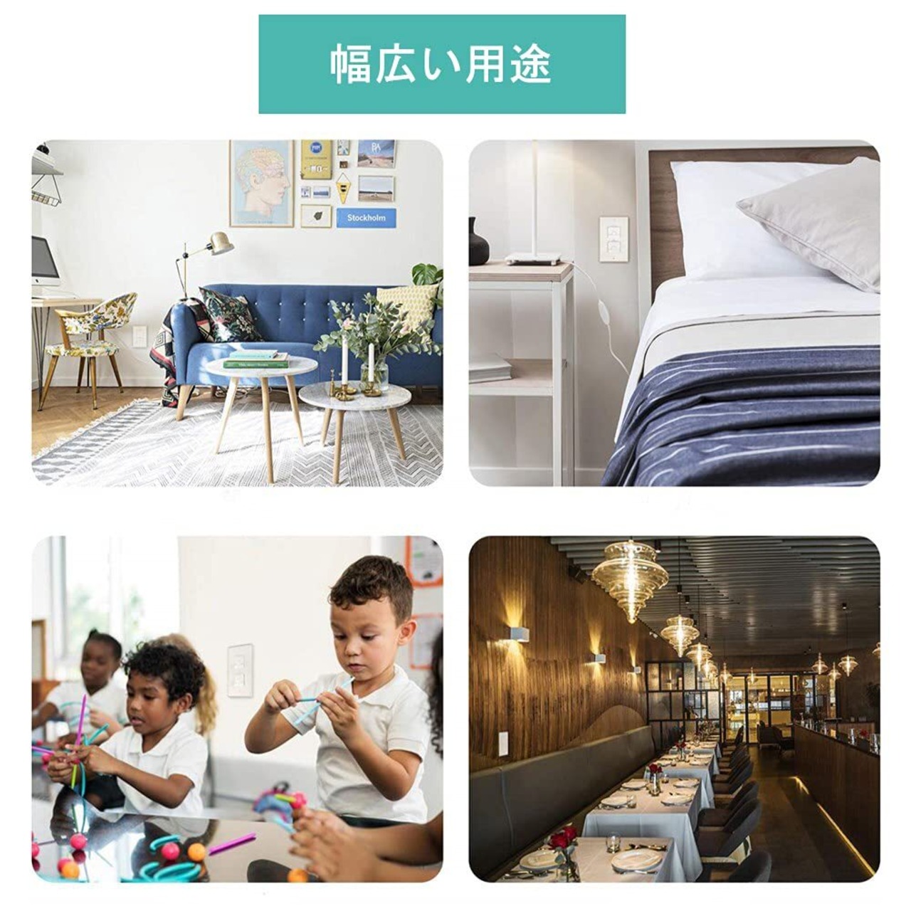 【幅広い用途に対応】大容量なので家中の壁面、延長コード・タップのコンセントにご利用いただけます。業務用としても保育園、幼稚園、老人ホームでのご使用もオススメです。