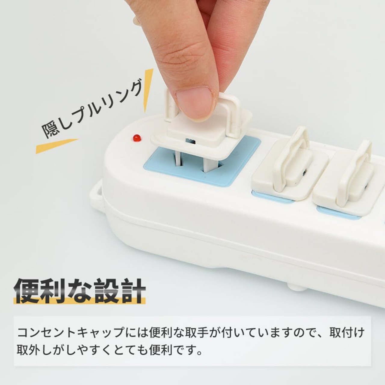 【便利な設計】コンセントキャップには便利な取手が付いていますので、取付け取外しがしやすくとても便利です。大人にとっては使いやすいですが、赤ちゃんにとっては開けにくいため、安全です。