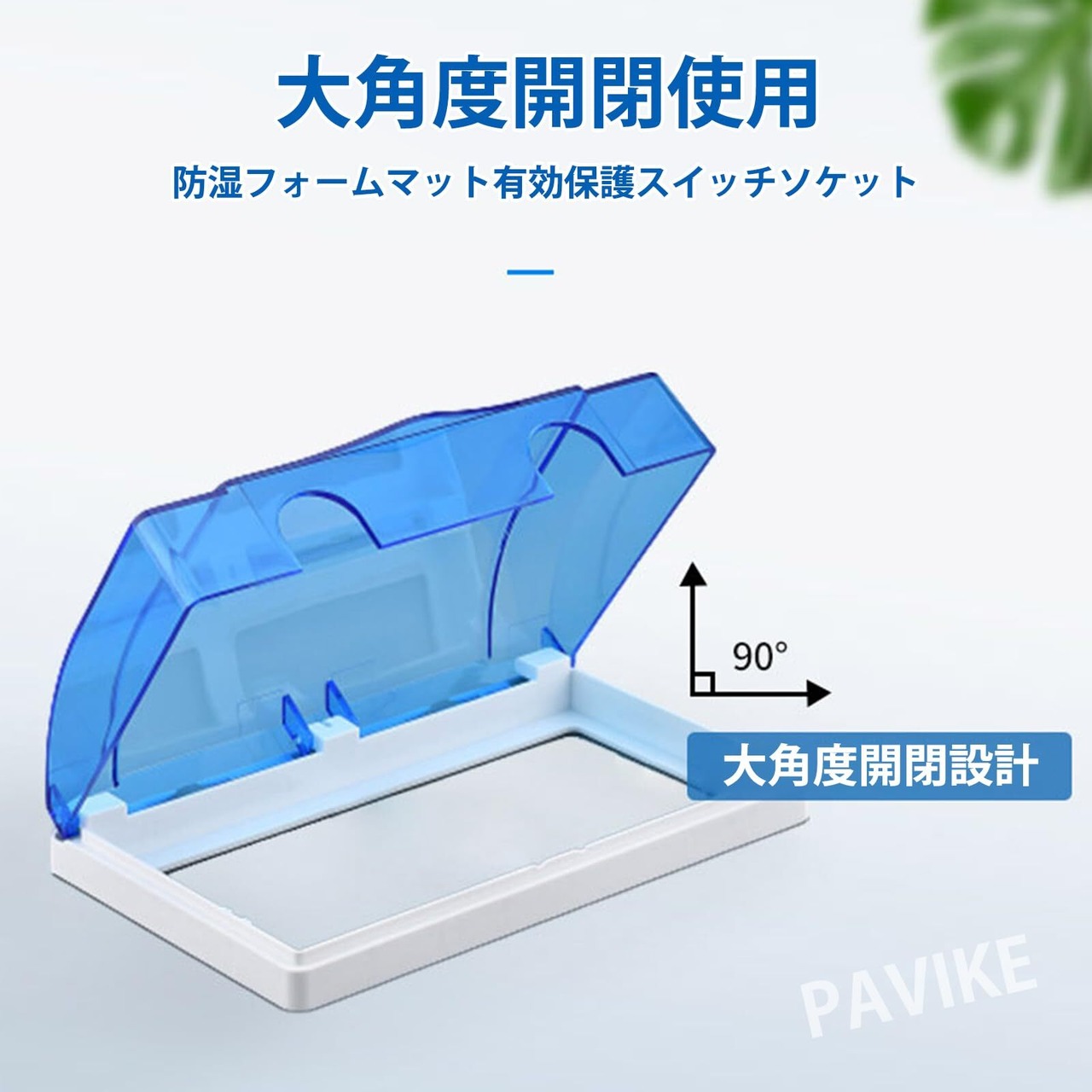 PAVIKEコンセントカバー【18.5*11*4.3cm】防水コンセント コンセントガード 防水スイッチカバー 90°固定点開閉