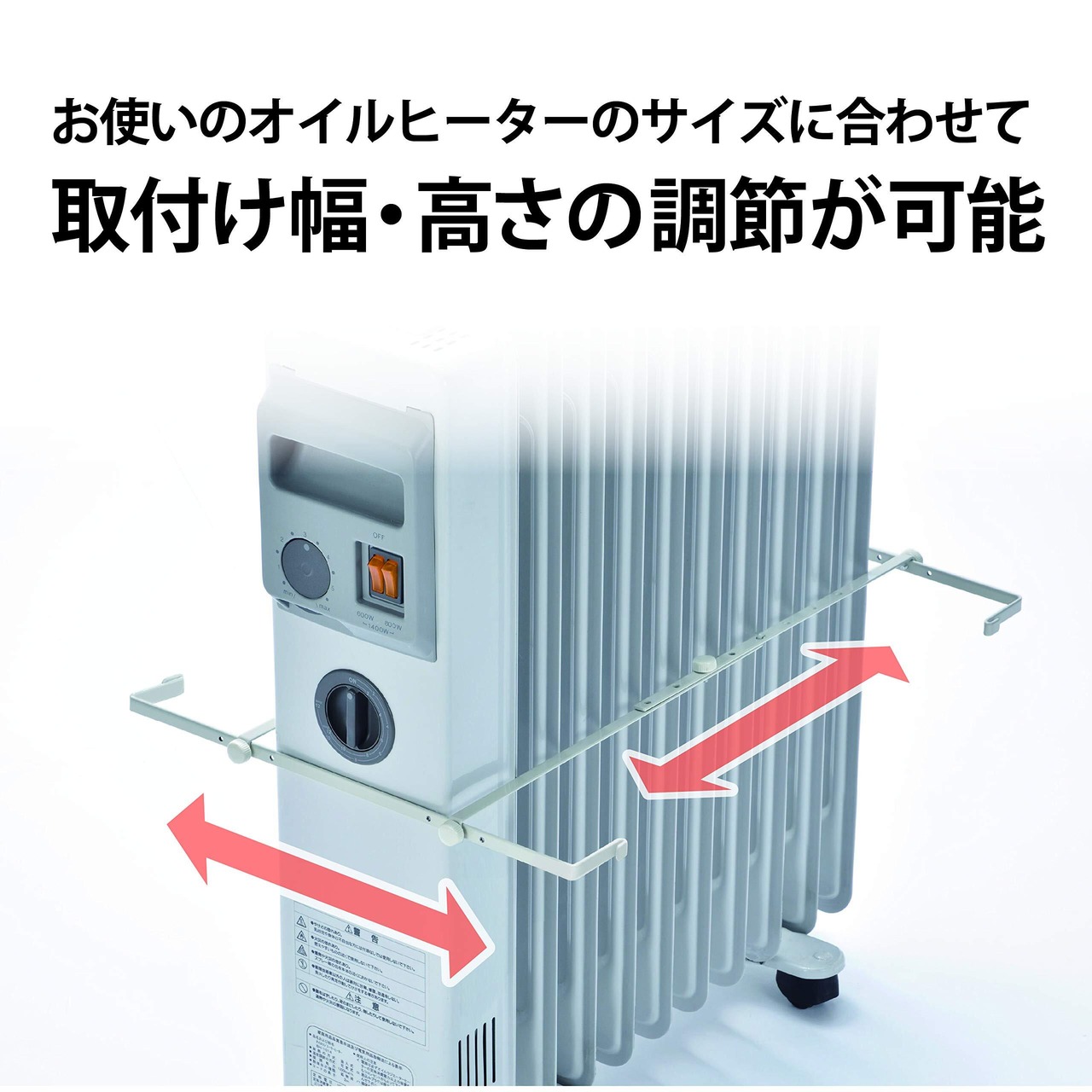 幅44×奥行72×高さ81.5cmのサイズは、一般的なオイルヒーターに対応しており、様々なタイプのヒーターと組み合わせて安心してご使用いただけます。