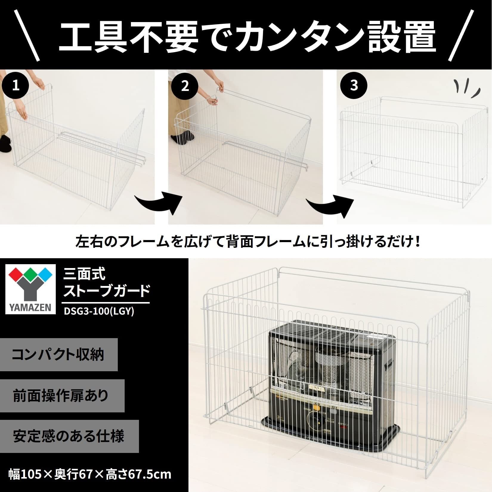 山善(YAMAZEN) ストーブガード 三面式 幅105×奥行67×高さ67.5㎝ コンパクト収納 かんたん組立 ライトグレー DSG3-100(LGY)