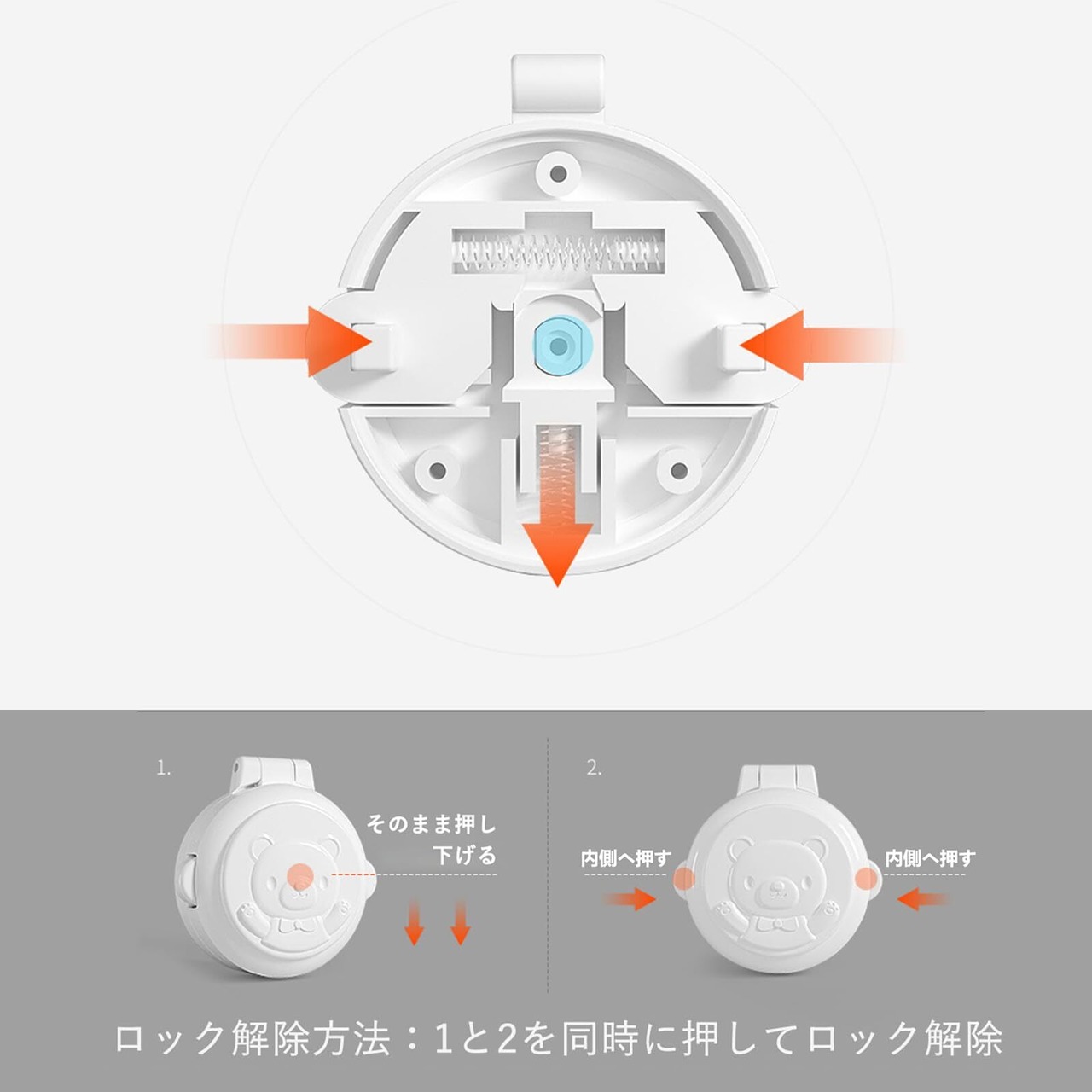 【取り付け、取り外しが簡単】テープをちぎって使いたい場所に貼り付けるだけで、対象物の表面を傷つけず、しっかりと貼り付き、剥がれることはありません。数秒で取り付け、取り外しが可能です 穴あけや特別な工具は不要で、あなたの生活に便利さをもたらします。ロック解除方式:①両方のボタンを同時に内側に押します。②或いは、クマの模様を下に押します。
