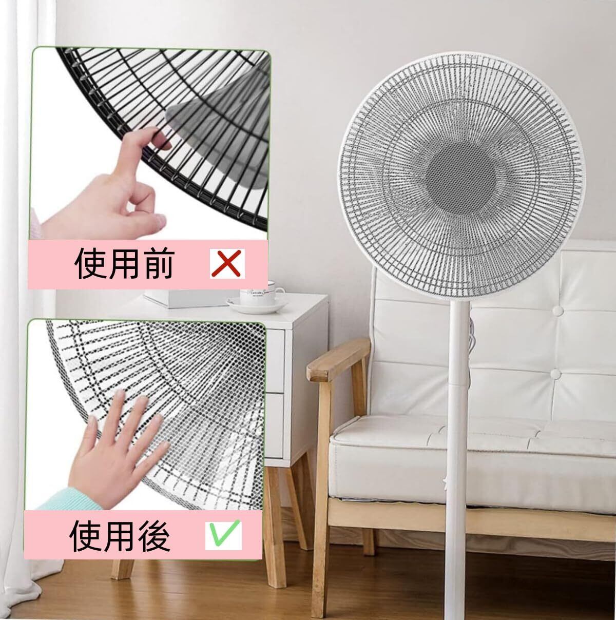 【使い易い 】簡単に扇風機に取り付けられ、洗いもしやすい、ゴムを大きくひろげて前からかぶせてください。ほどんとな扇風機へ適用です。