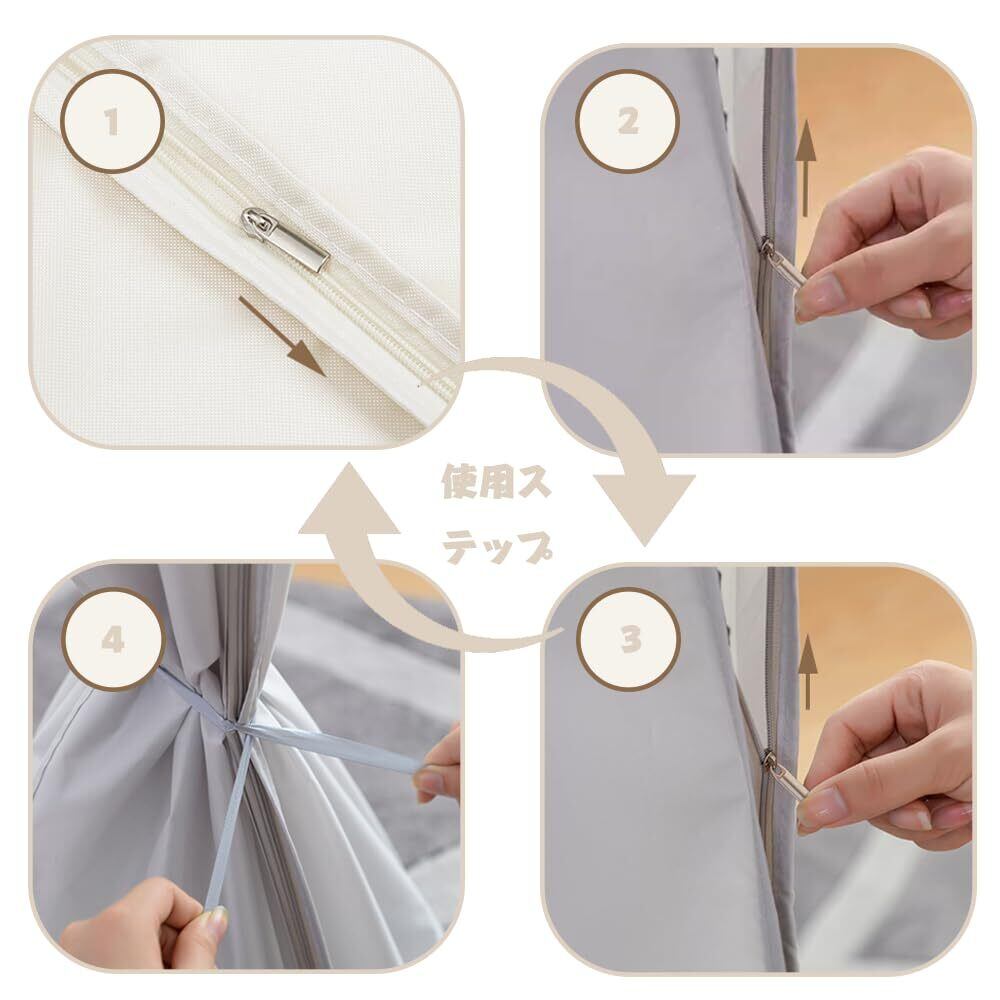 [収納と取り出しが簡単]:ジッパーが上から開くので、収納と取り出しが簡単です。布製なので、洗濯が簡単で清潔に保てます。