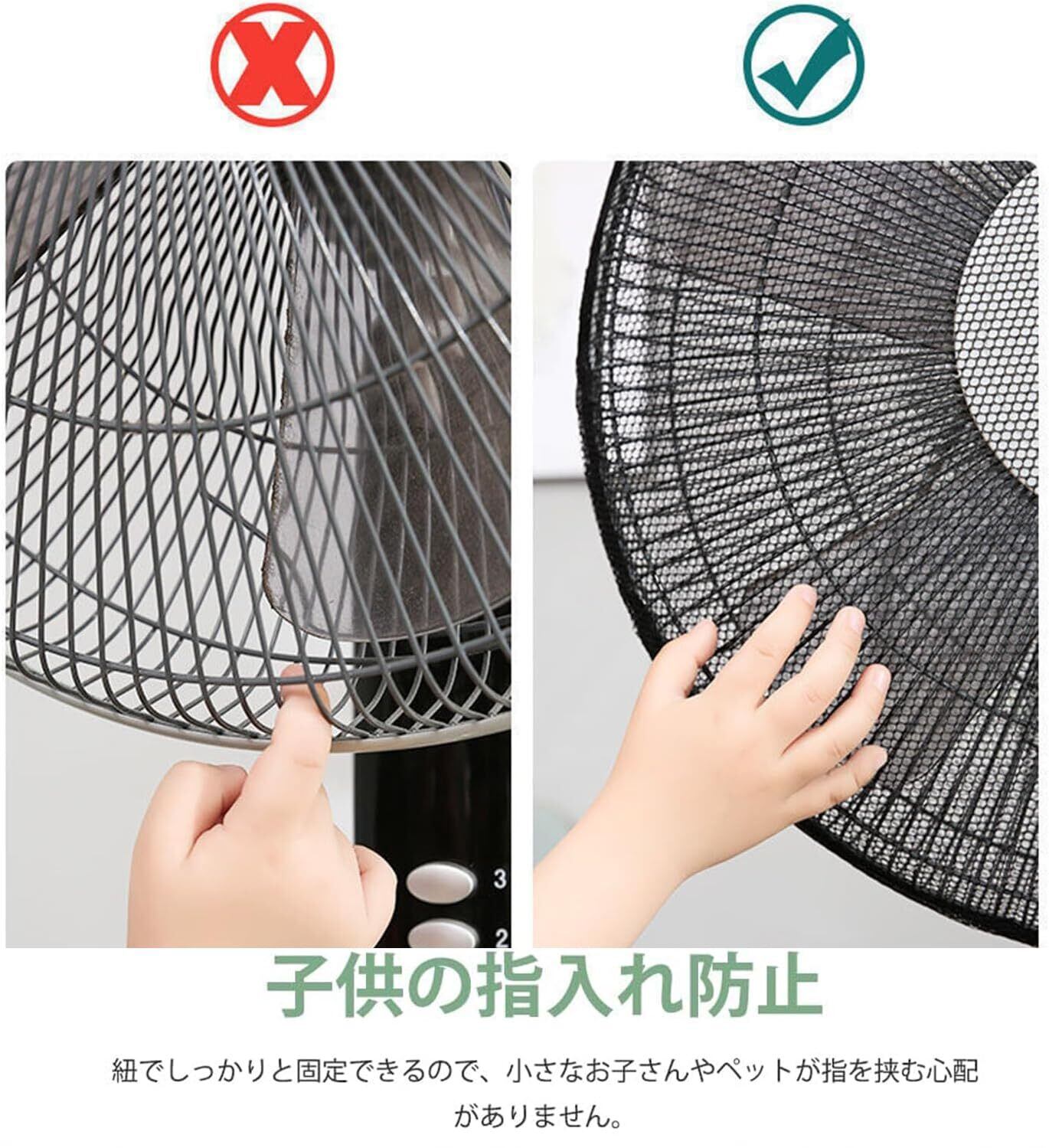 HOOWDAMY 扇風機カバー 2枚入 扇風機安全カバー裏までかかる 直径40~45cm 裏までかかる 紐で固定するタイプ 子供 指はさみ防止 セーフティーネット 家庭用 業務用 (ブラック) | yankees