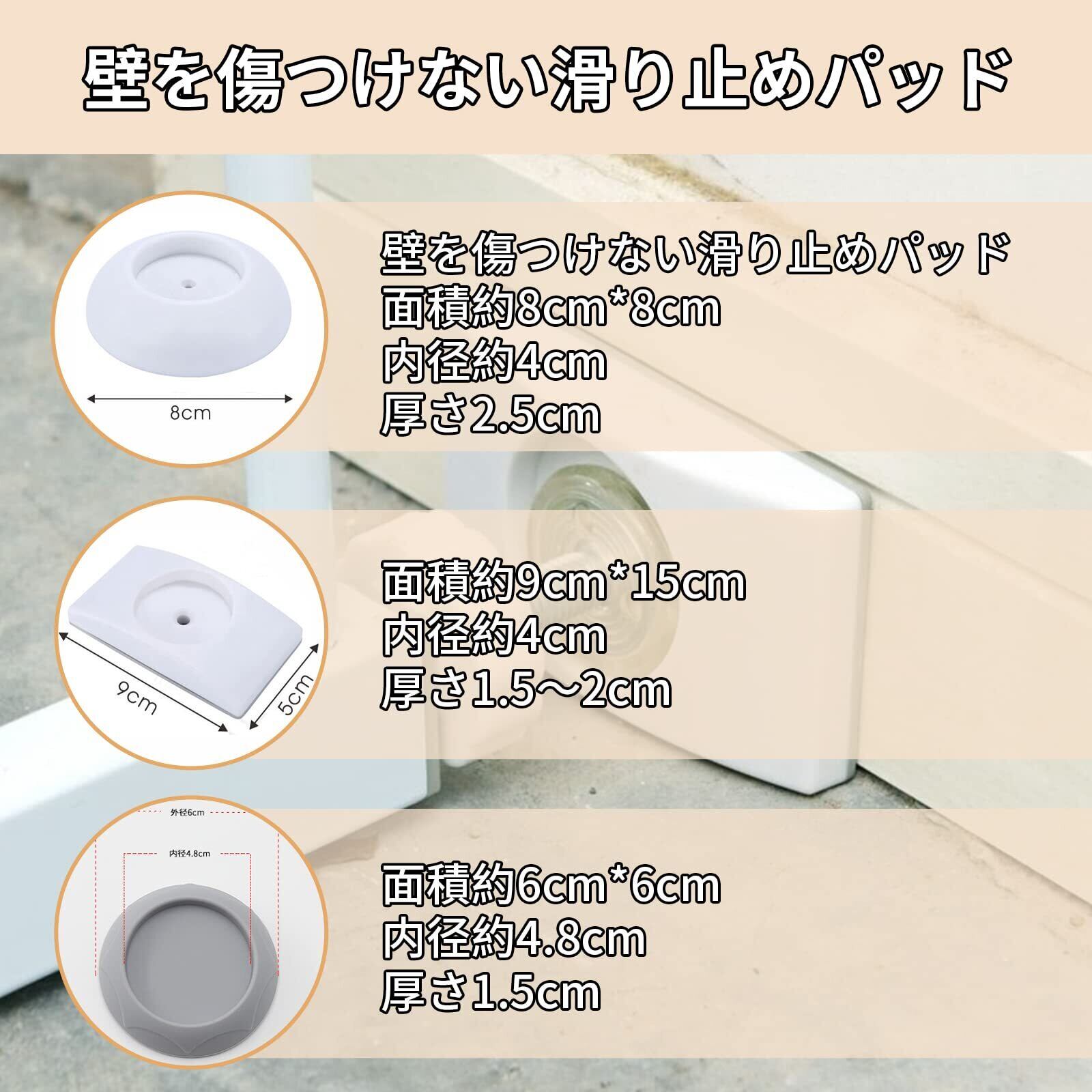 ・特長:つっぱり式、滑り止めパッド、シンプルデザイン