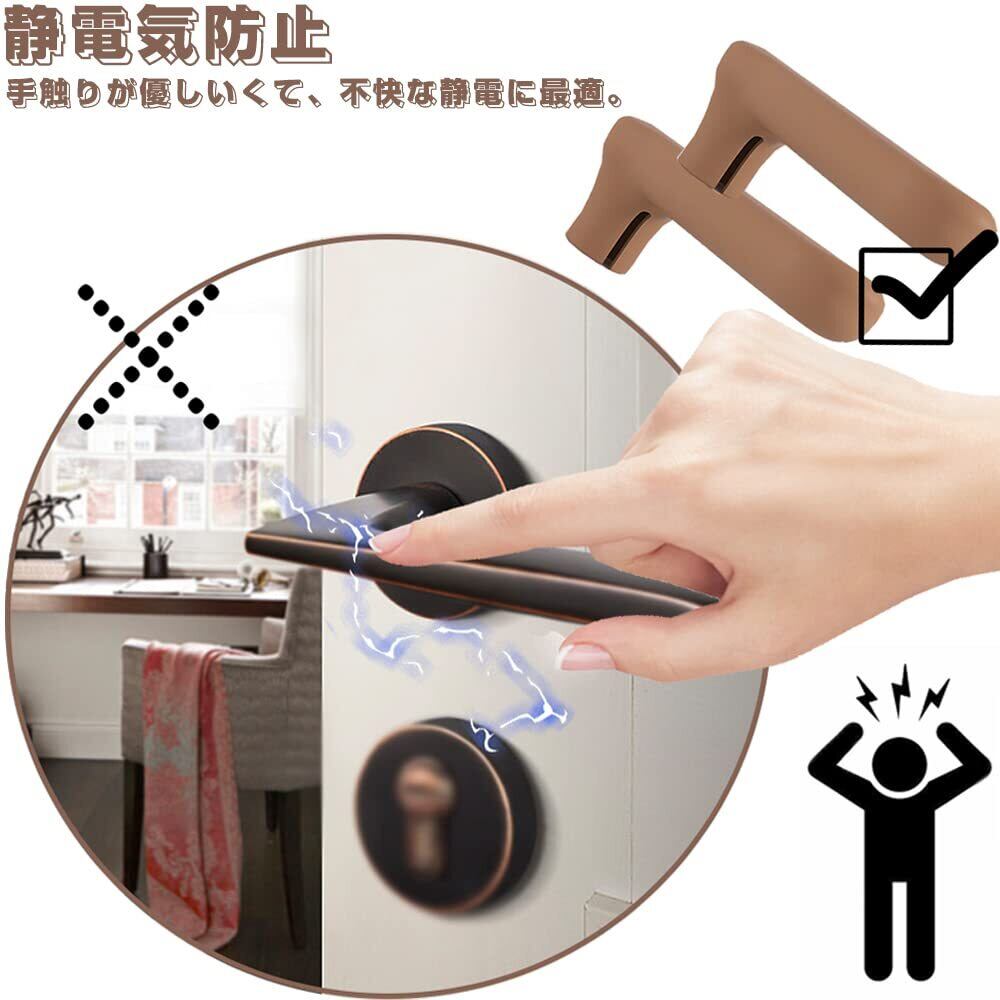 ドアノブ レバー カバー シリコン製 2個セット ドアハンドル グリップクッション 家庭ドアノブカバー 静電気防止/子供ケガ防止/防衝突/衝撃吸収/滑り止め 取り付け簡単 (コーヒー色)