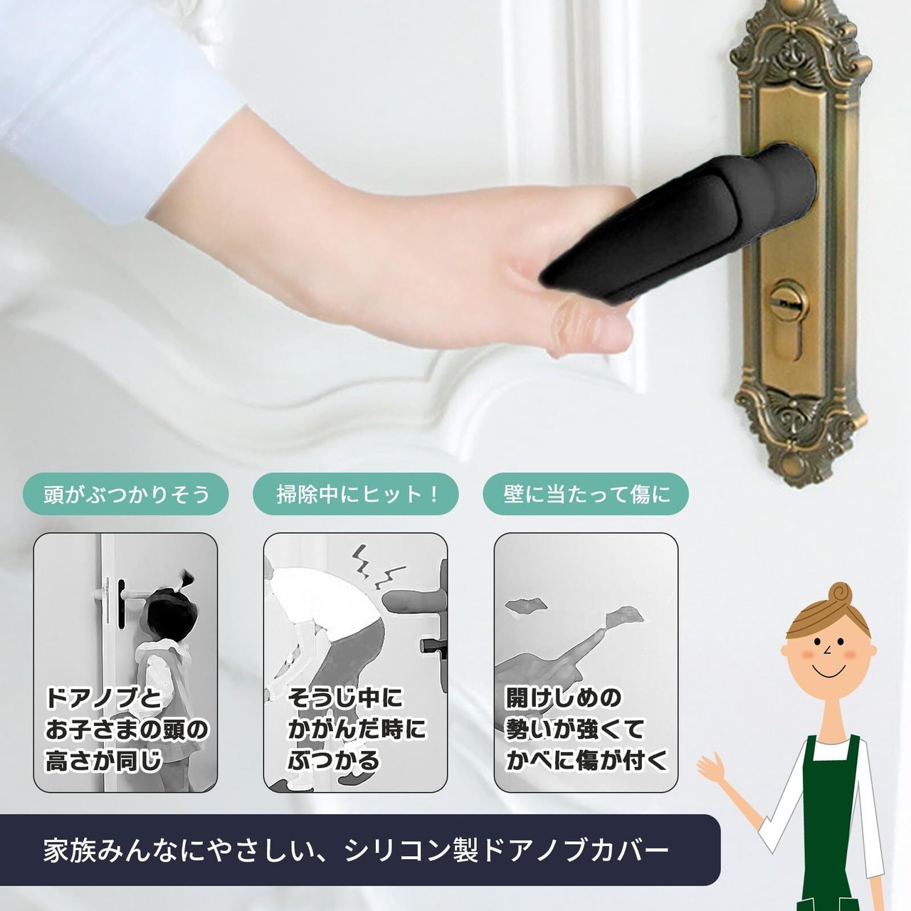 「[alldeblue]ドアノブカバー」で、安心・快適な生活空間を実現しましょう!このブラックのシリコン製ドアノブカバーは、特に家庭での安全対策として重宝するアイテムです。