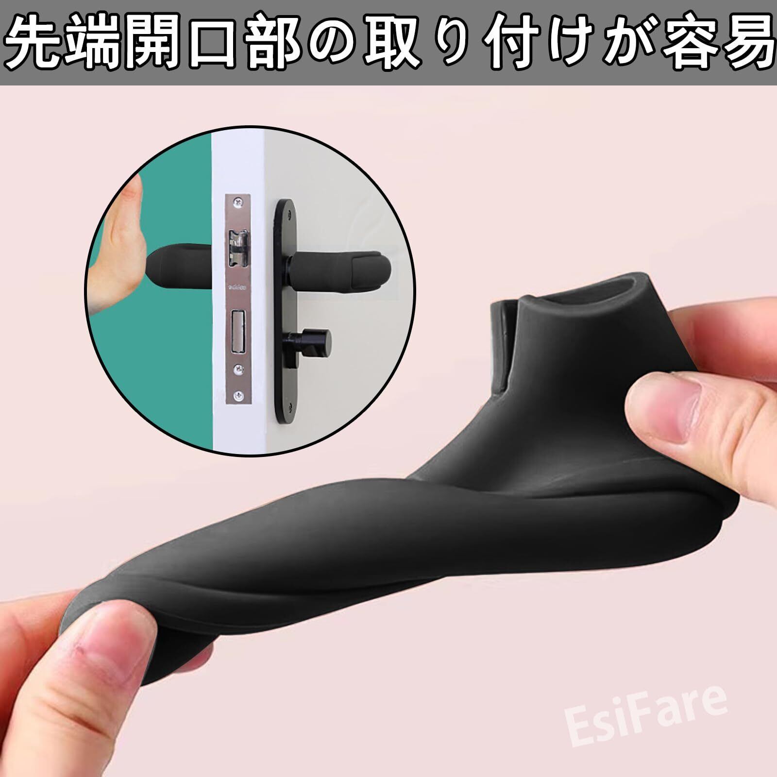 EsiFare ドアノブカバー シリコン製 2個セット ドアノブ レバー カバー 衝撃防止 ドアハンドルカバー 柔らかい素材 ドアハンドル グリップクッション 滑らない クッション 傷防止 滑り止め 静電気防止 子供ケガ防止 被せるだけ 取り付け簡単 (ブラック)