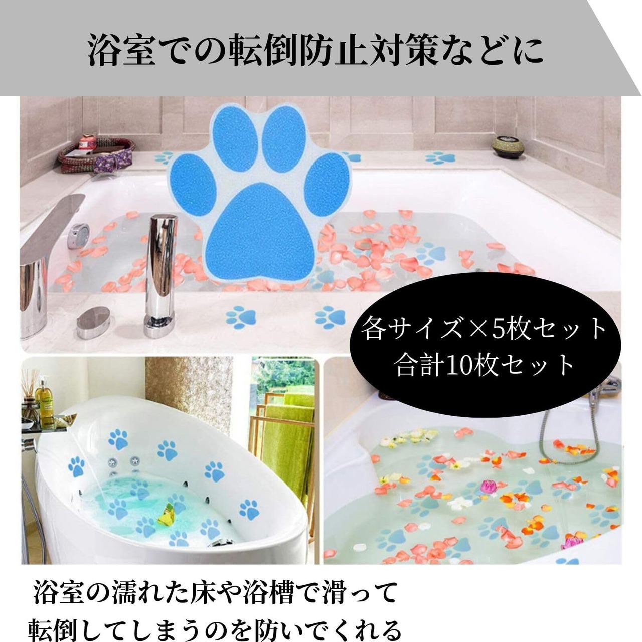 浴室での転倒などを防止:濡れた浴室の床や浴槽での滑りを防止する滑り止めステッカーセット。犬の足跡を思わせるかわいいデザインの滑り止めシールです。