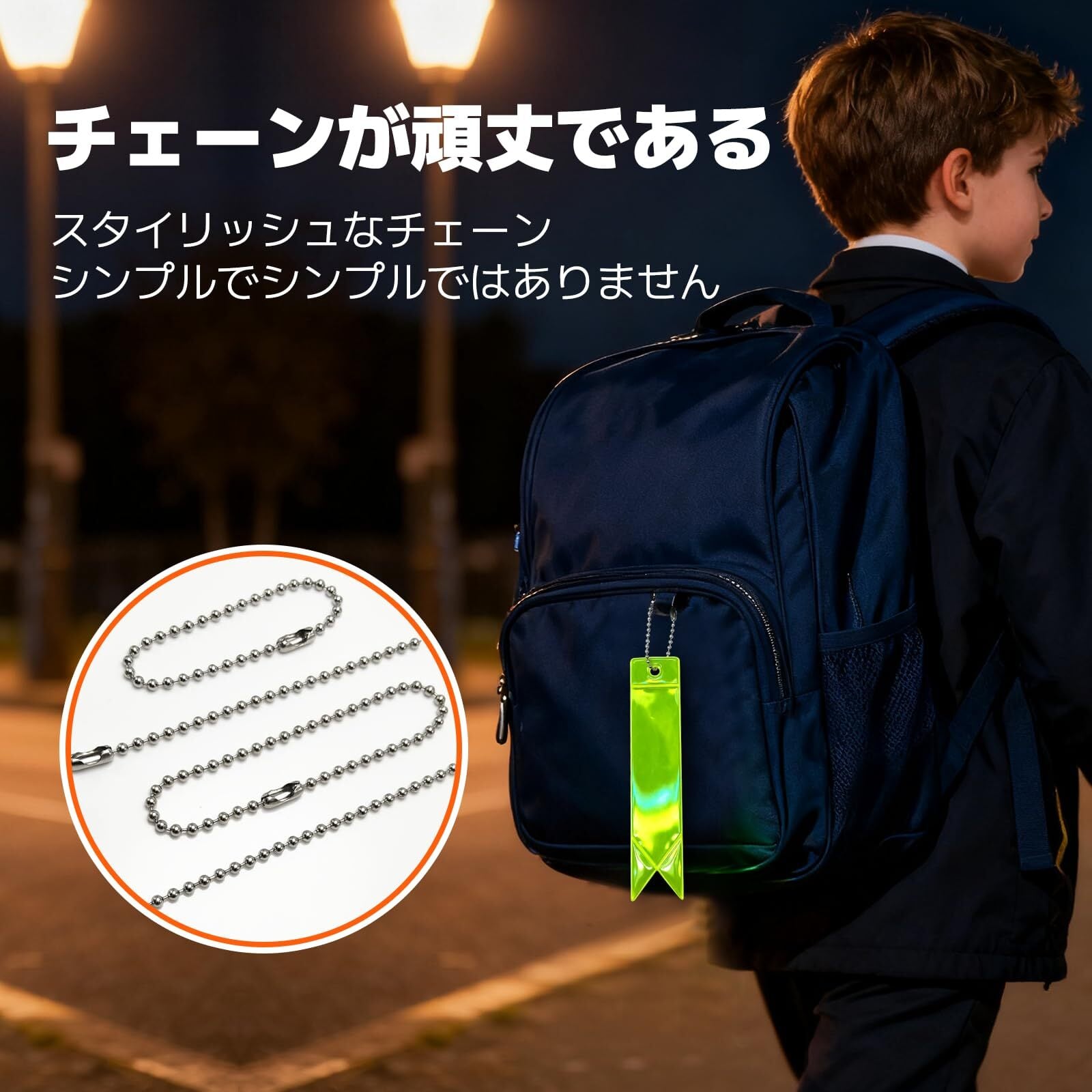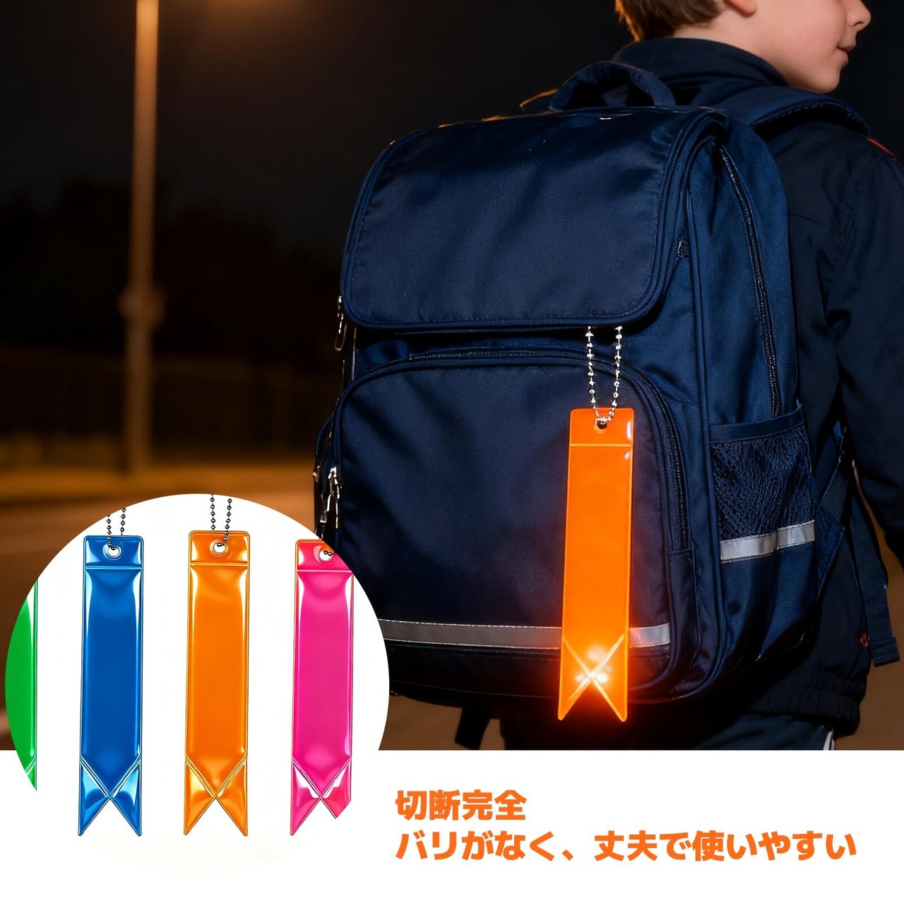 本商品は、優れた反射性能を持つ高輝度リフレクターを使用しています。光をしっかり反射することで、薄暗い環境でも視認性を確保。自分やお子様の存在を安全にアピールすることができます。「※この商品に関するご質問がございましたら、お気軽にお問い合わせください。」