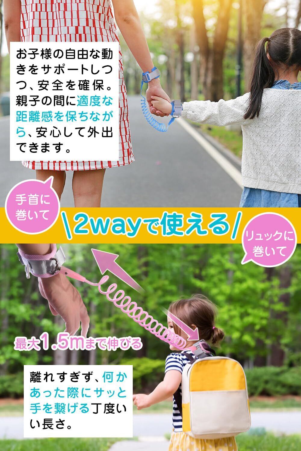 【 その一瞬を後悔させない。万が一に備えて安心のハーネス 】 良く動き回る子供を連れての外出は飛び出しや、連れ去り、迷子が心配ですよね。最大1.5mまで伸びるハーネスで、お子様の自由な動きをサポートしつつ、安全を確保。親子の間に適度な距離感を保ちながら、安心して外出できます。手首に巻いて使うのはもちろん、リュックに巻き付けて使用することもできます。