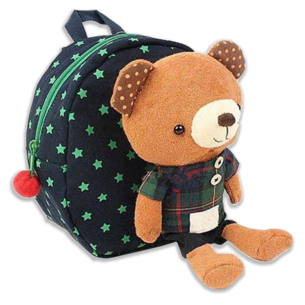 【可愛いくまちゃんとお出かけ】 可愛いくまちゃんがついたリュックはお子様も大喜び。 ベビーリュックは可愛い星柄で、レッド、ネイビーの2色からお選びいただけます。