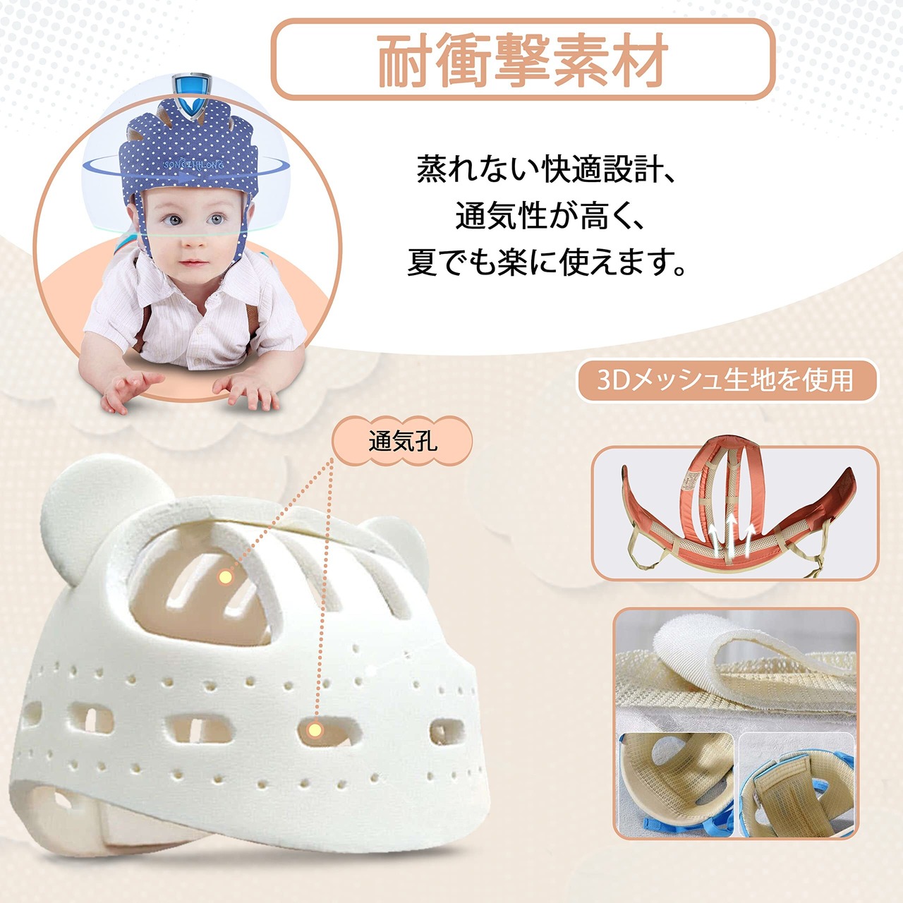 [ 通気性抜群 ]:通気性や吸汗性に優れたデザイン設計、超軽量 65gで赤ちゃんの頭に負担をかけず使用できます。