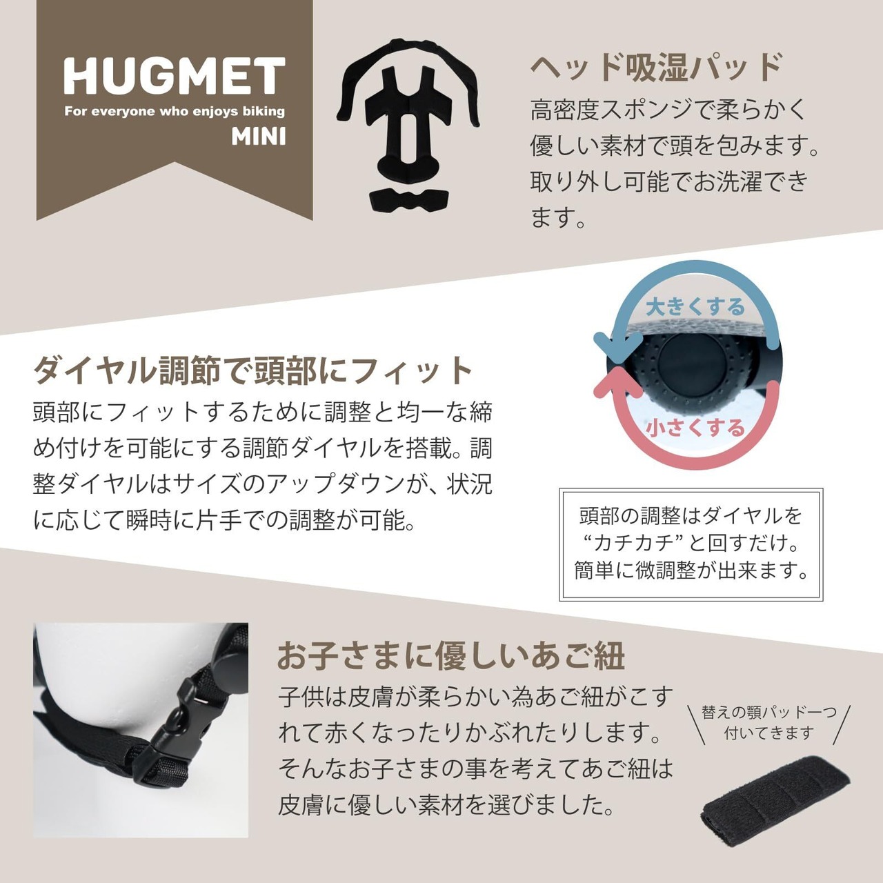 Hug mini 自転車 ヘルメット SGマーク 子供 幼児 未就学児 1~5歳 【 超硬質PC素材 ダイヤル調節ワンサイズ 】 軽量 深め設計なのに230g ベビー キッズ キッズヘルメット 子供用 こども スケボー 小さい おしゃれ SG
