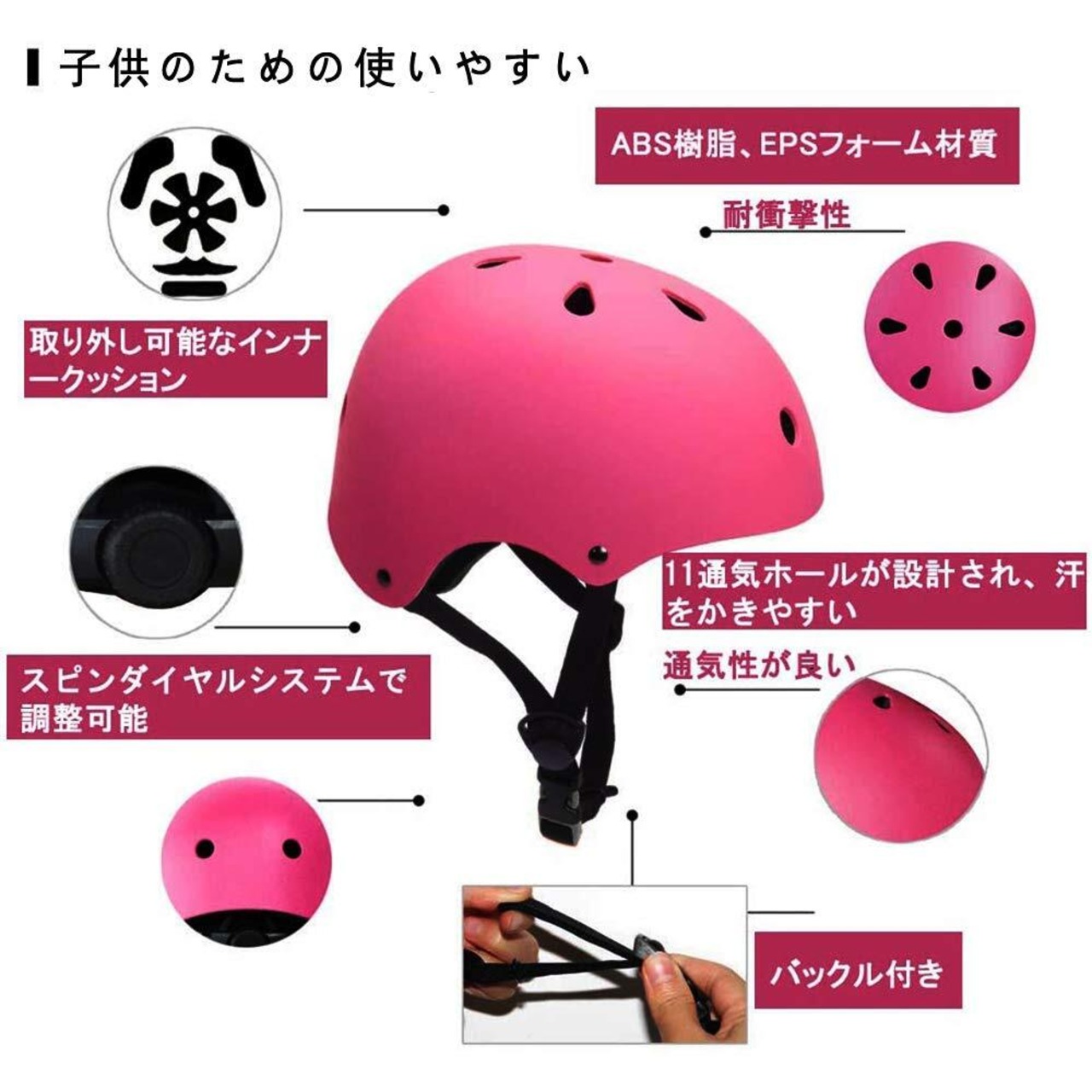 【調節可能】ダイヤル式の調整ネジ付きで、ヘルメットのサイズはお子様にふさわしい頭囲に調整可能です。あご紐は、ワンタッチ式なのでお子様でも簡単に着脱できます。キッズ保護ギアはベルクロバンドを使い、手、肘、膝のサイズに合わせて簡単調整可能、フィット感も抜群です。子供の日、クリスマス、誕生日、入園などの贈り物として最適です。注文する前に、必ずサイズをご確認ください。