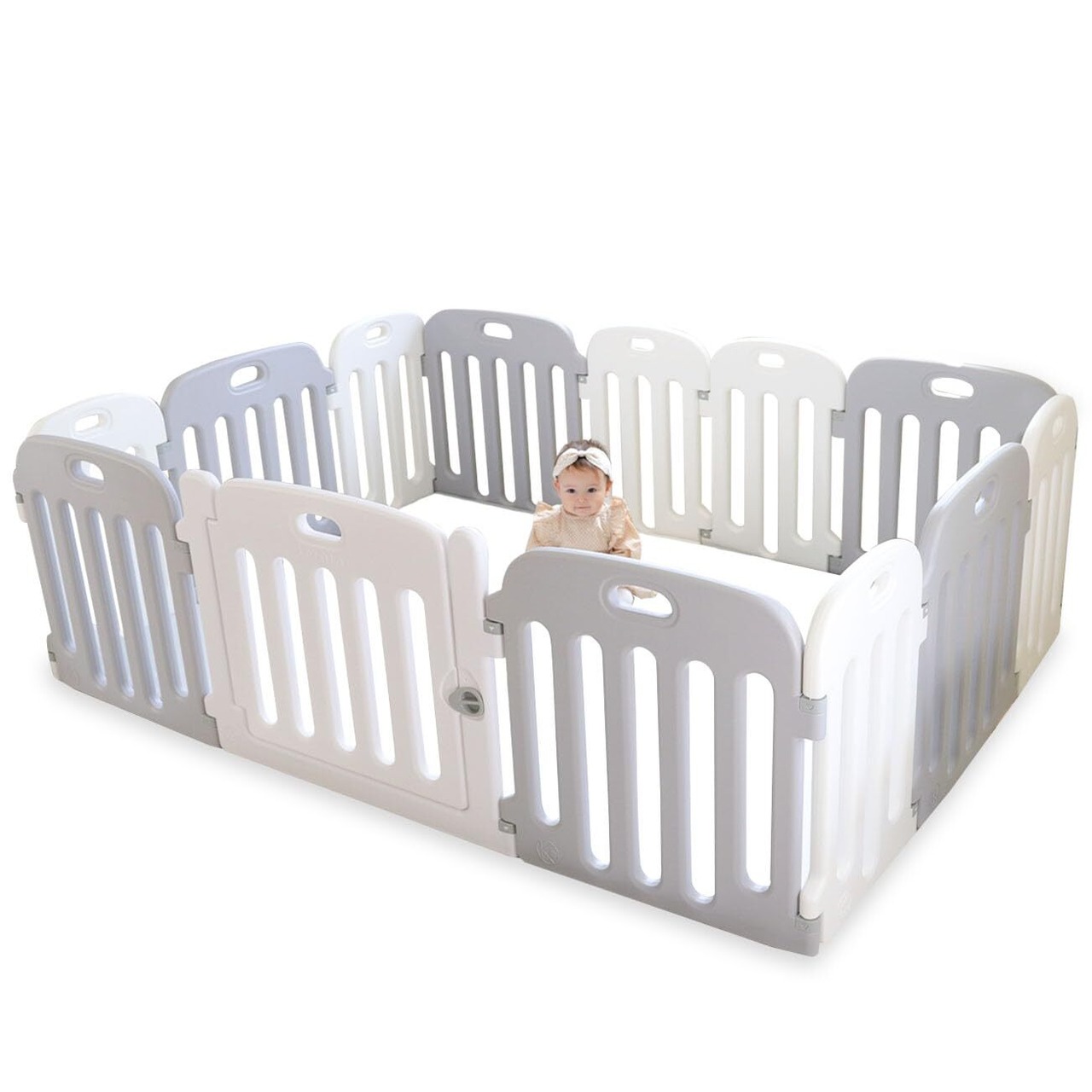 (ケラッタ) ベビーサークル 赤ちゃん 組み立て簡単 形のアレンジ自在 ベビー 扉付き (200×140cm, グレー×ホワイト)