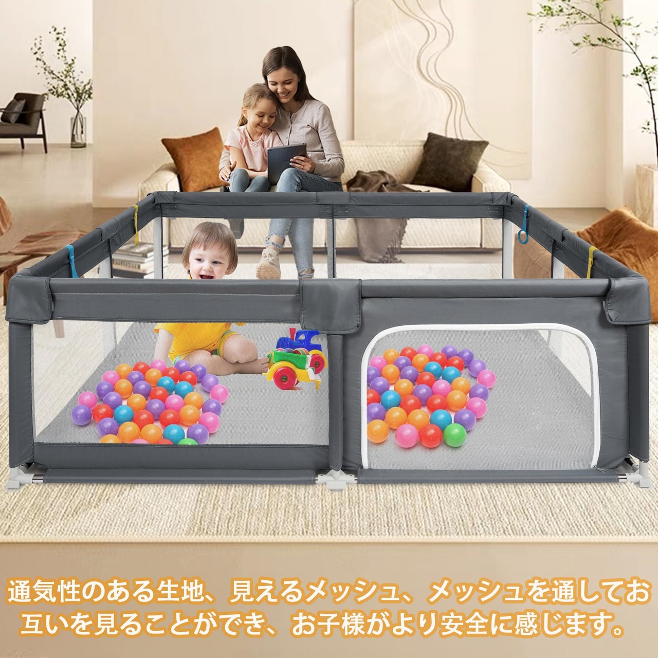 「BQKOZFIN ベビーサークル」は、赤ちゃんの安全を考えた理想的な遊びエリアを提供します!大型の200x200cmサイズで、安心して遊べる空間を作り出し、忙しい育児をサポートする為にデザインされています。